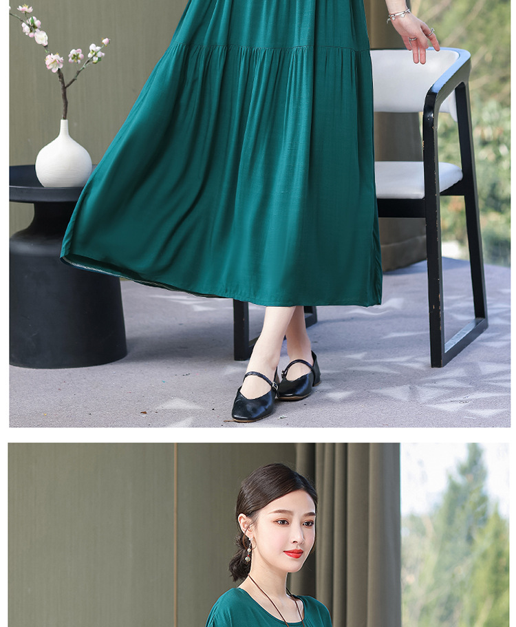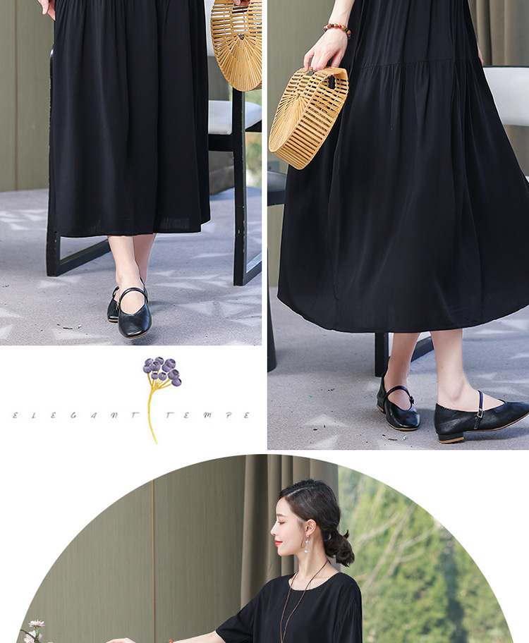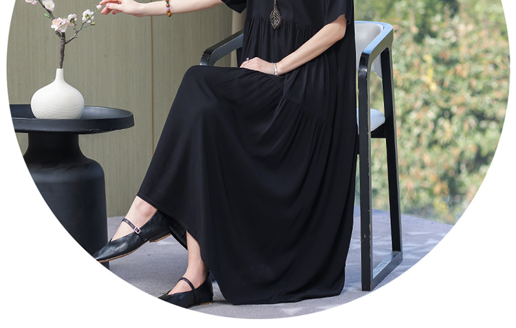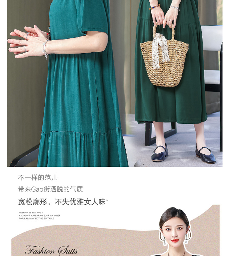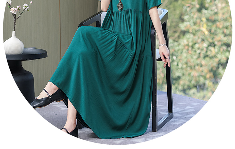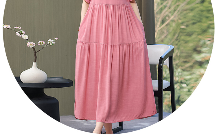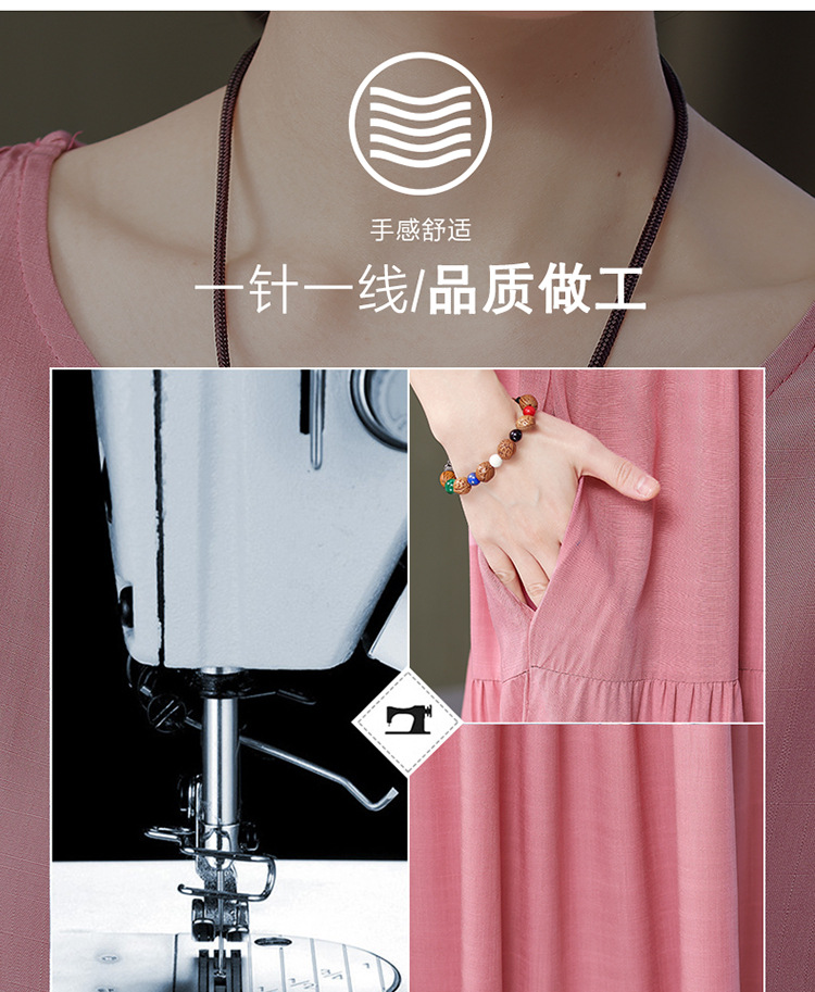 HS-01棉绸连衣裙女夏天大码气质宽松胖妈妈遮肚显瘦纯色休闲棉麻长裙子