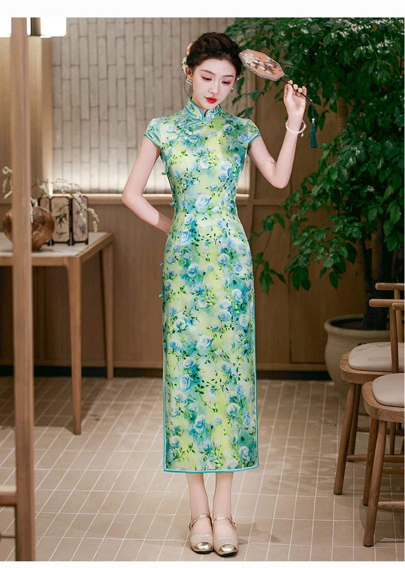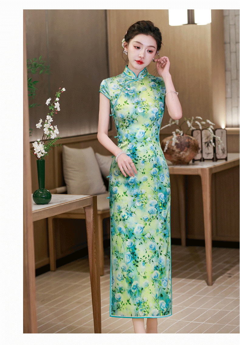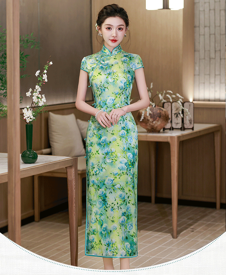 WX2026新款真丝旗袍桑蚕丝长款改良中式桑蚕丝连衣裙优雅气质修身复