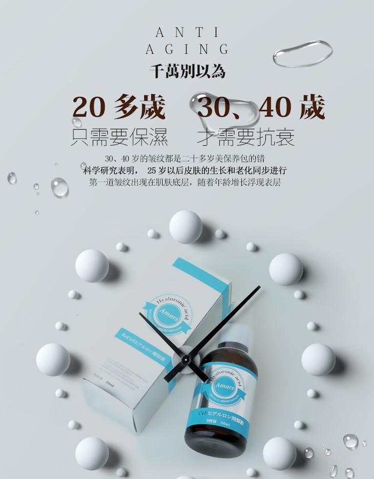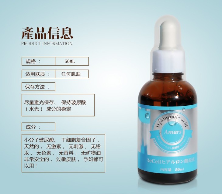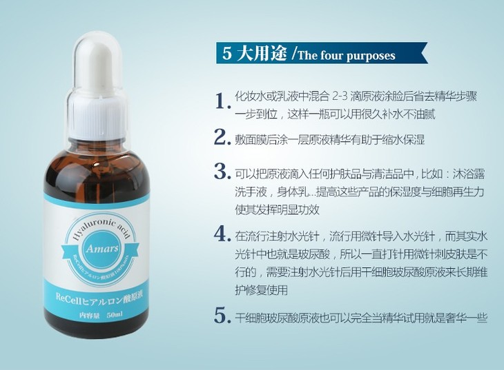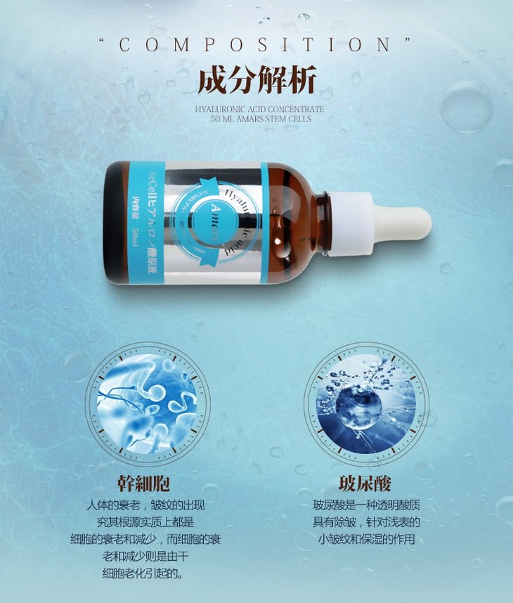 日本Amars干细胞玻尿酸原液精华液保湿补水水润清透紧致抗老 50ml