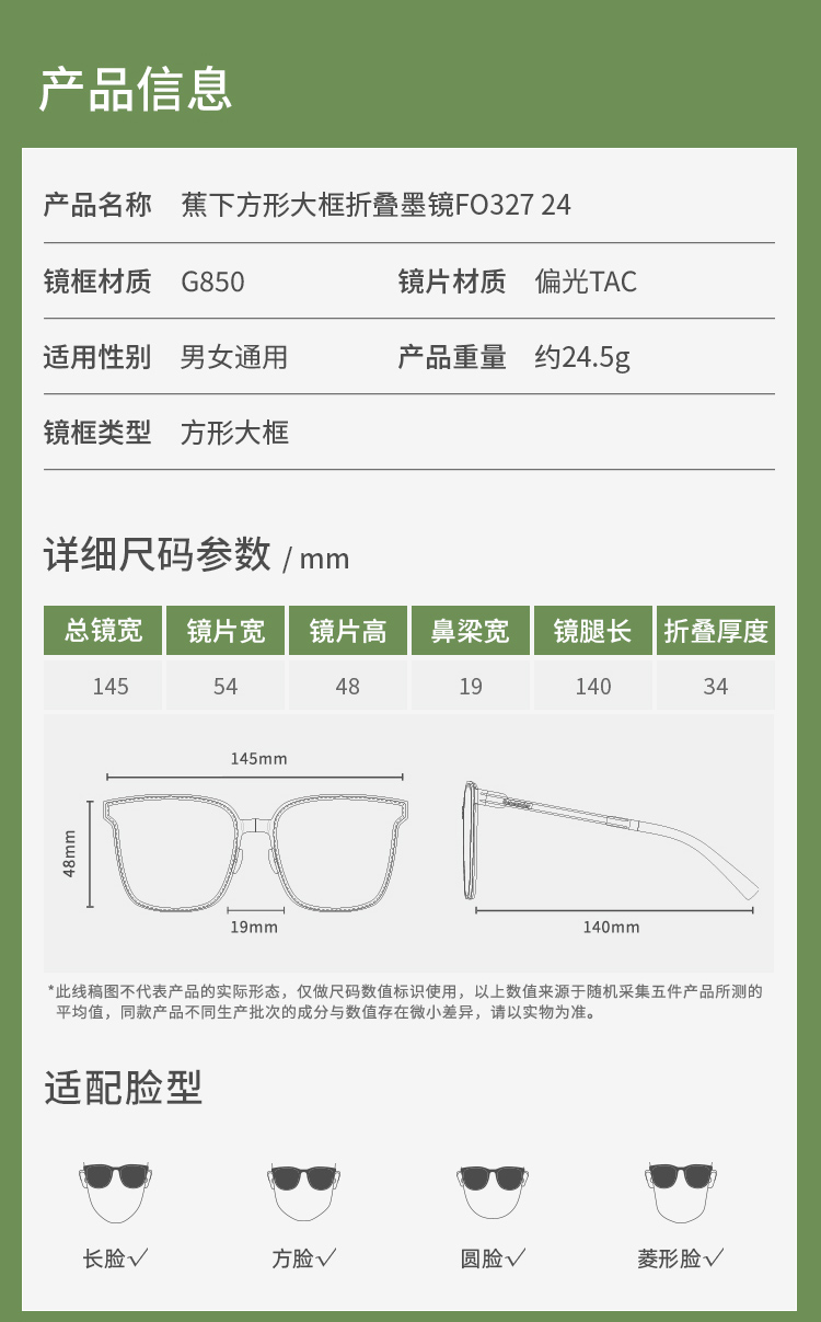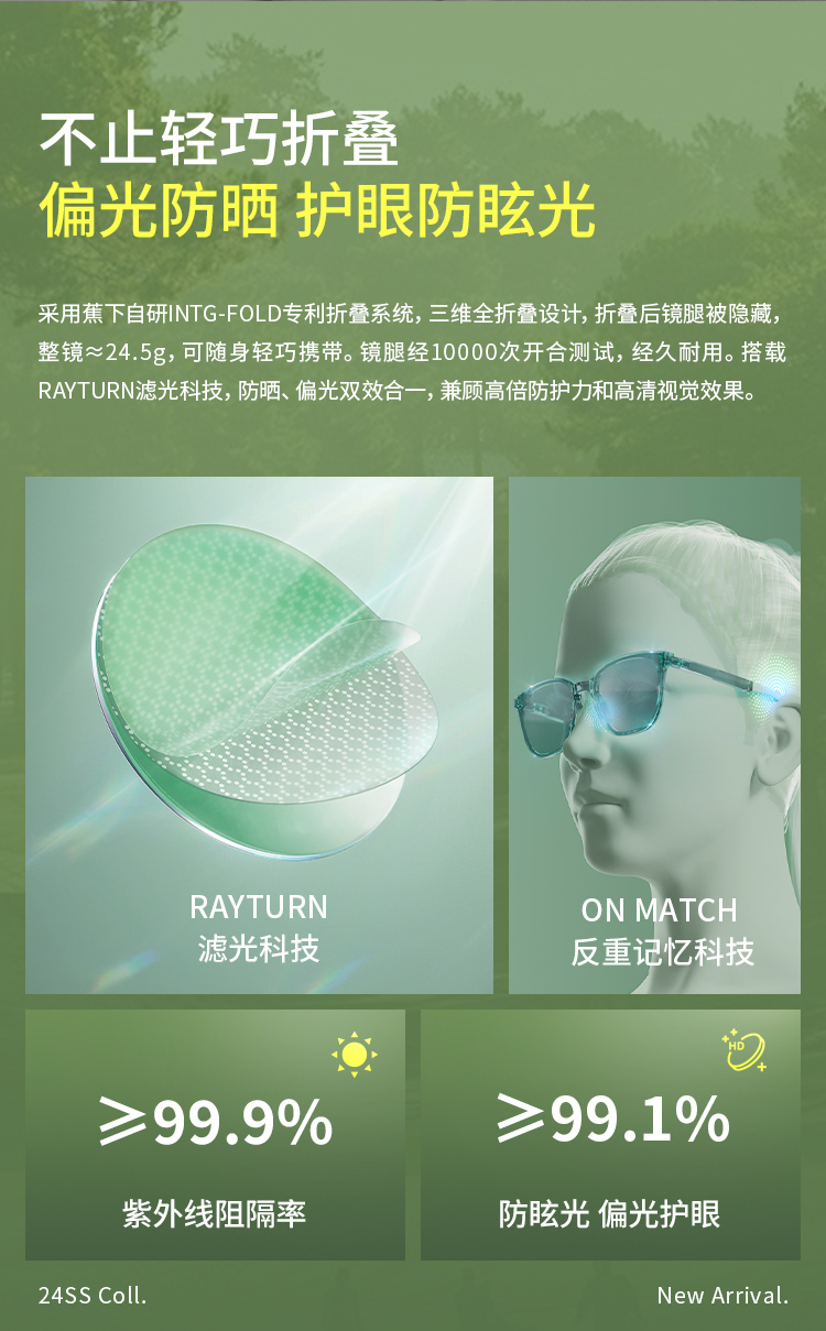 蕉下墨镜FO32724方形大框可折叠户外防晒轻便时尚防紫外线男女款
