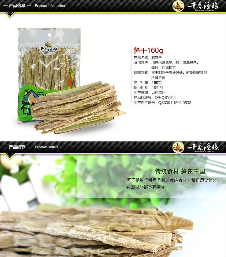 【千岛农品】千岛湖渔娘石笋干 160g/包