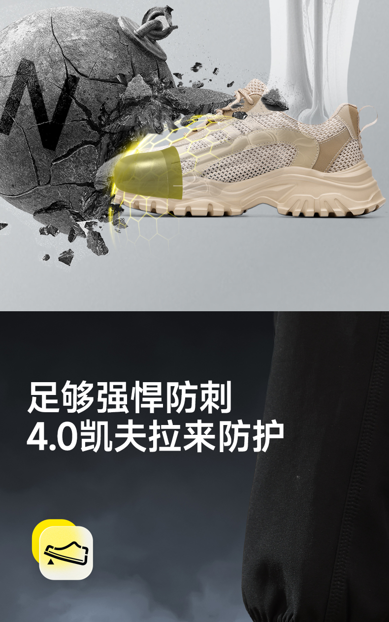 26年夏季新款劳保鞋防砸防刺透气轻便橡塑底4.0凯夫拉低帮