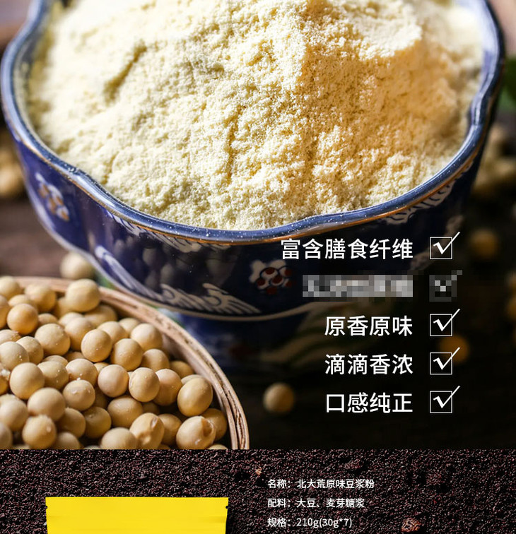 【北大荒】纯黄豆原味豆浆粉210g7天自律打卡速溶早餐 非转基因营养代餐食品