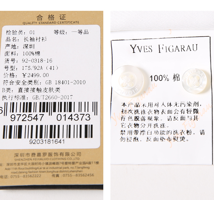 YvesFigarau伊夫·费嘉罗100%棉正装长袖衬衫920318