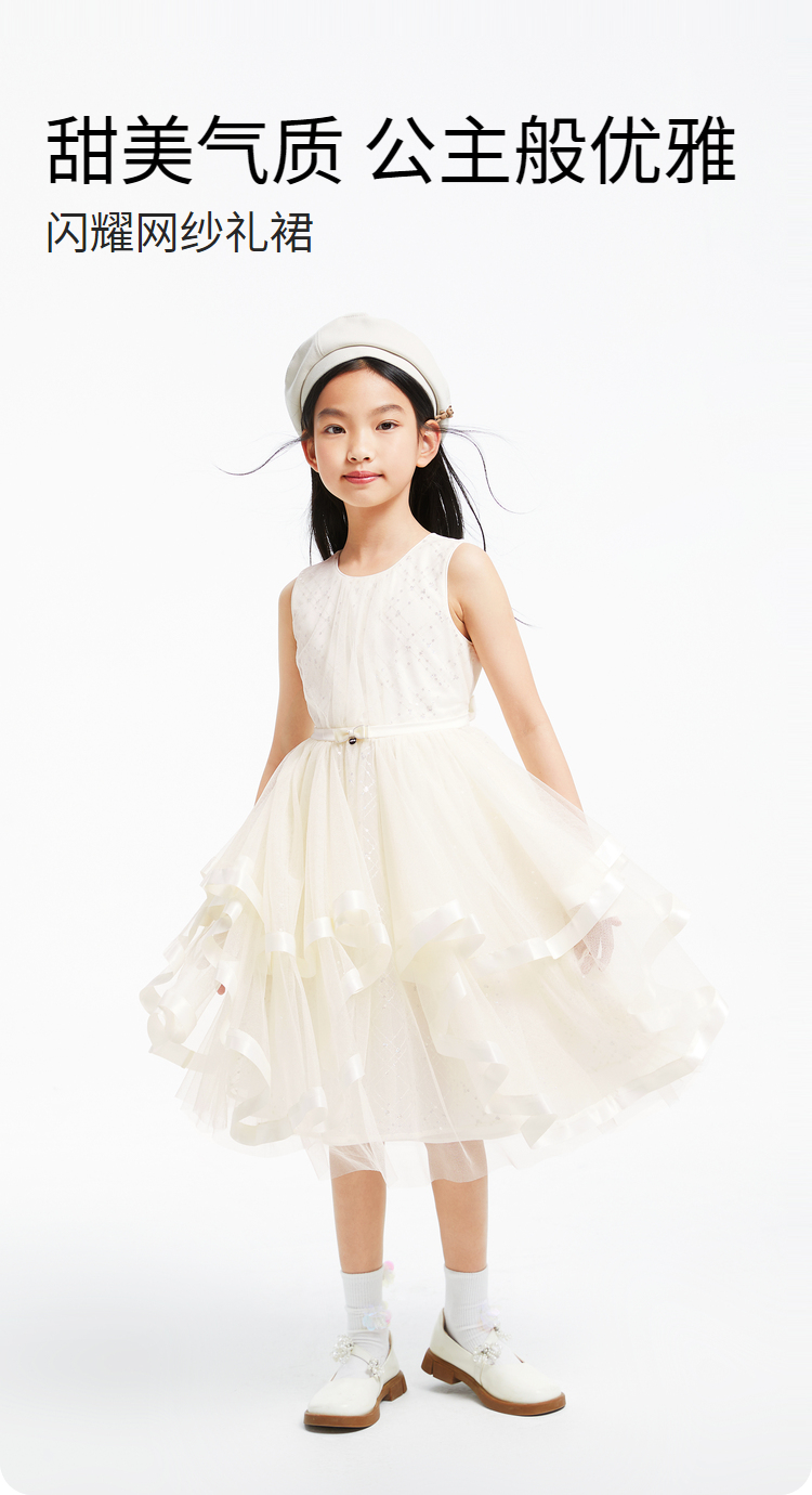 女童闪耀网纱公主礼裙新款安奈儿童装实体店同款AG433634