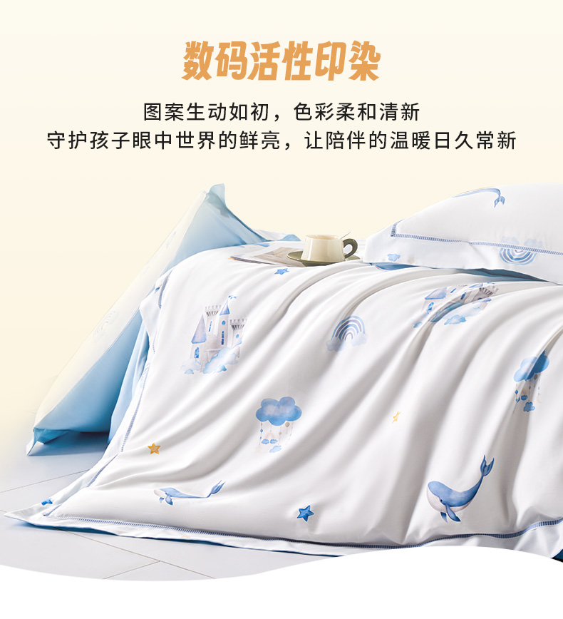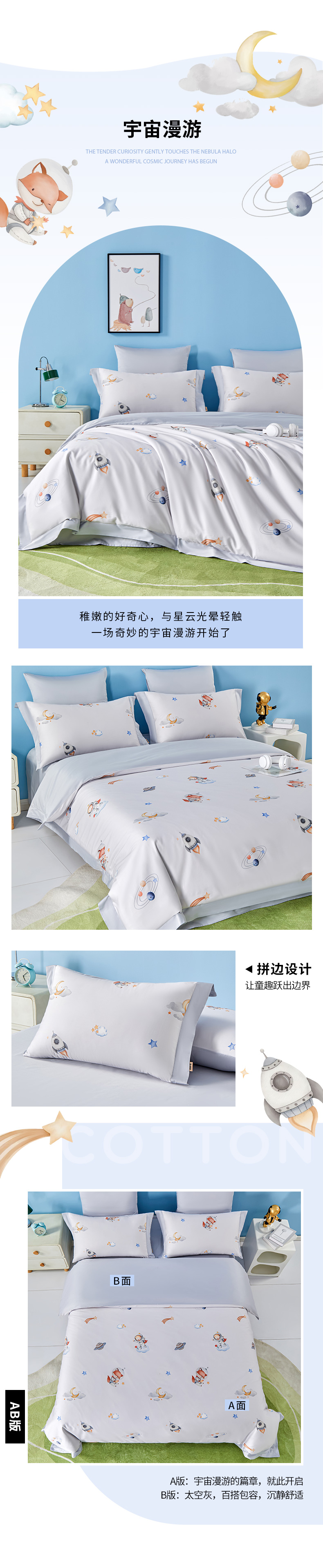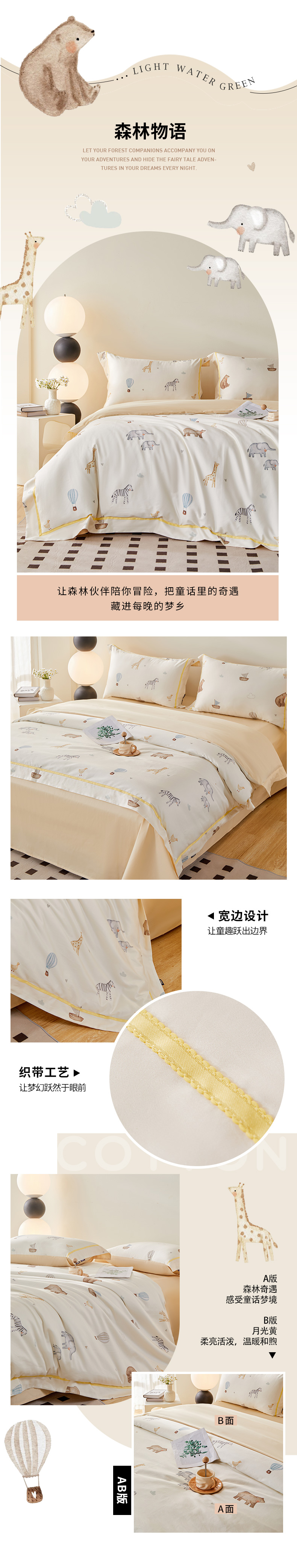 多喜爱 60S全棉缎纹四件套-童心绘梦系列 鲸落诗章/田园牧歌/宇宙漫游/甜梦乐园/森林物语【双股加捻工艺】【数码活性印染】【多款可选】宽边设计 撞色织带