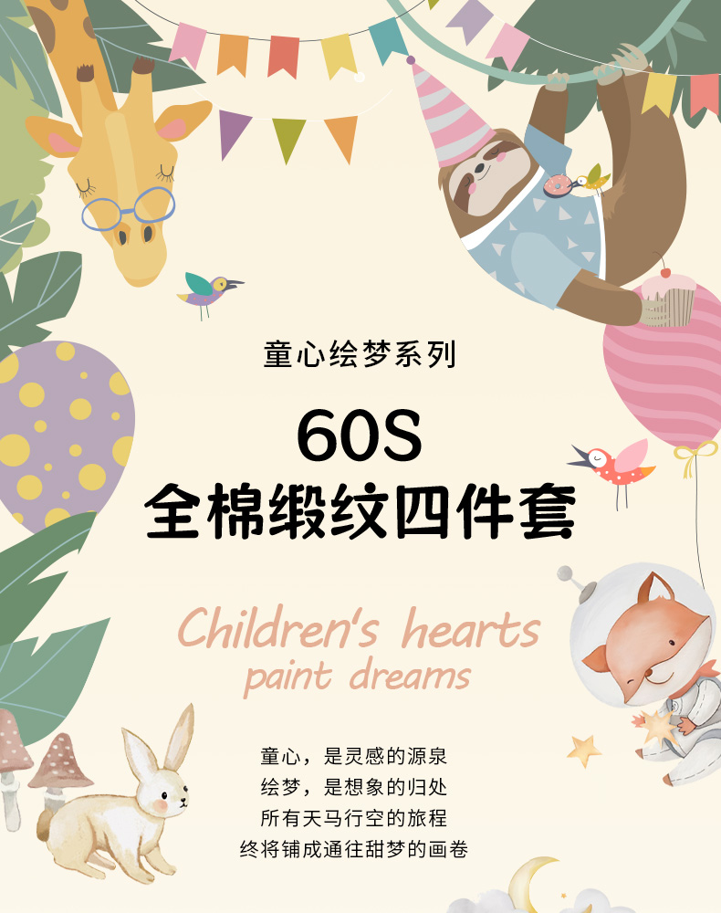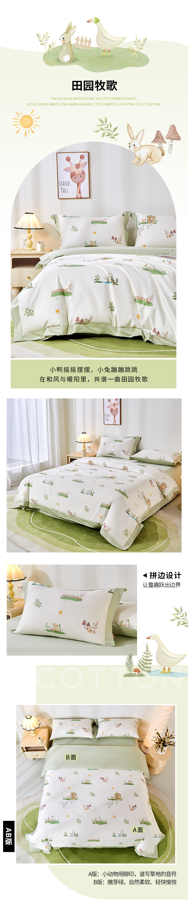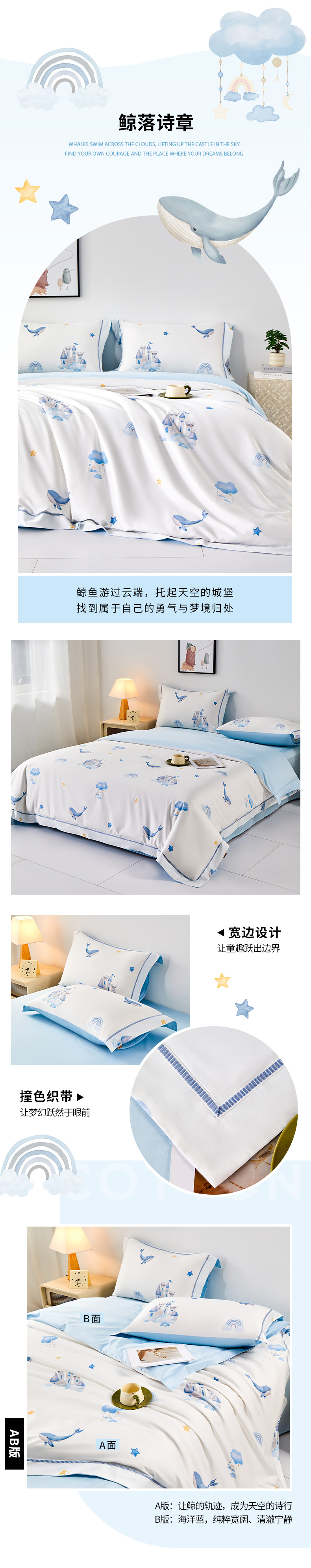 多喜爱 60S全棉缎纹四件套-童心绘梦系列 鲸落诗章/田园牧歌/宇宙漫游/甜梦乐园/森林物语【双股加捻工艺】【数码活性印染】【多款可选】宽边设计 撞色织带