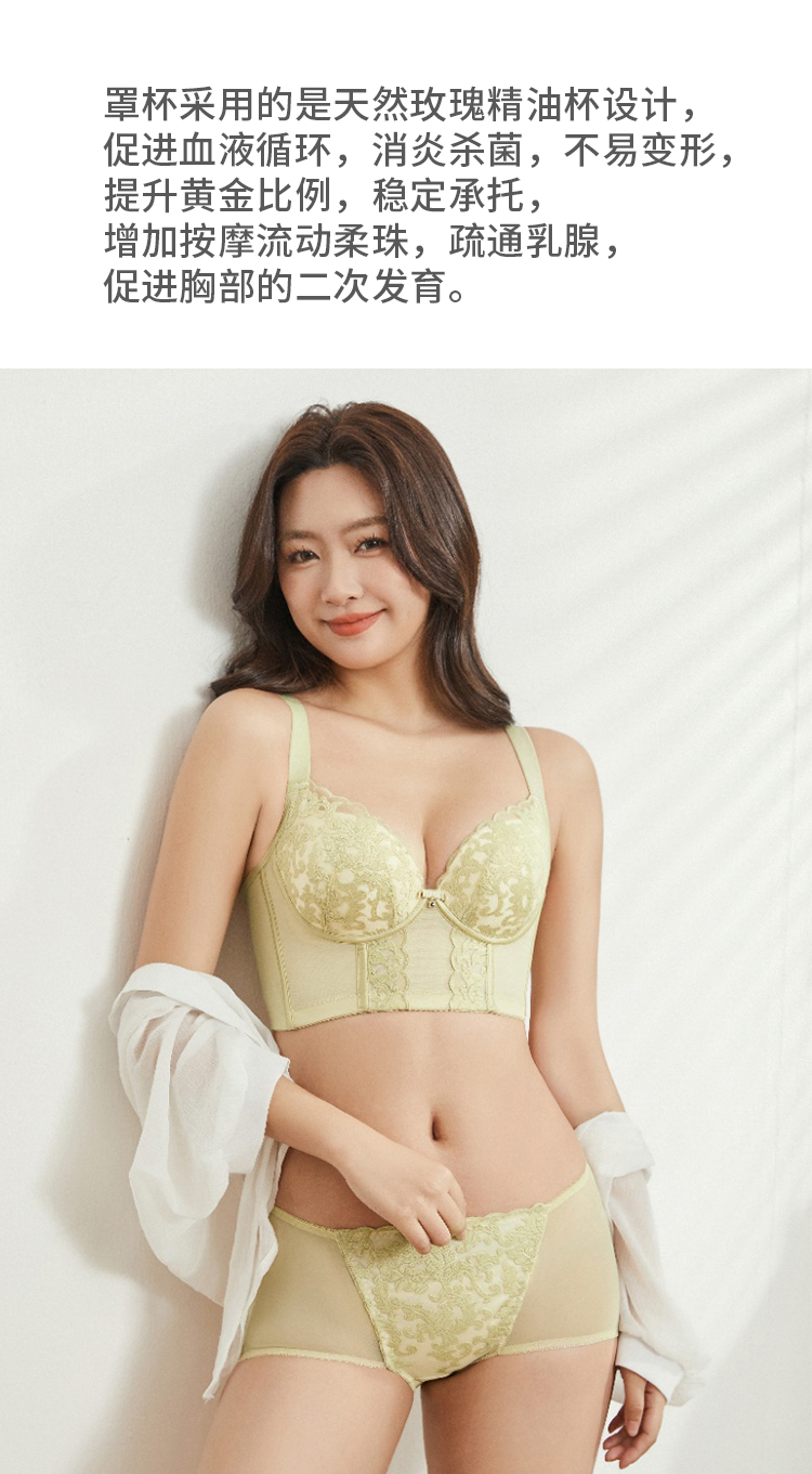提升黄金比例,稳定承托,增加按摩流动柔珠,疏通乳腺,促进胸部的二次发育。