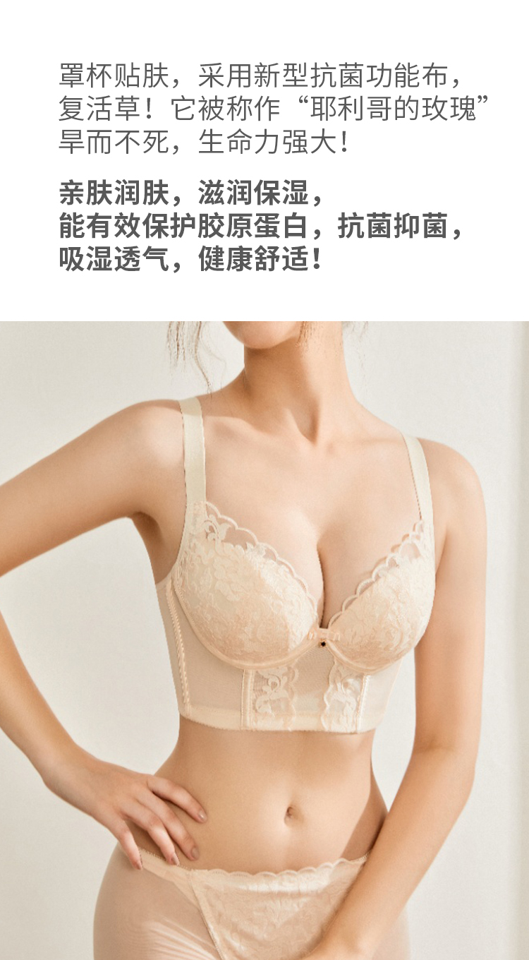 罩杯采用的是天然玫瑰精油杯设计,促进血液循环,消炎杀菌,不易变形,