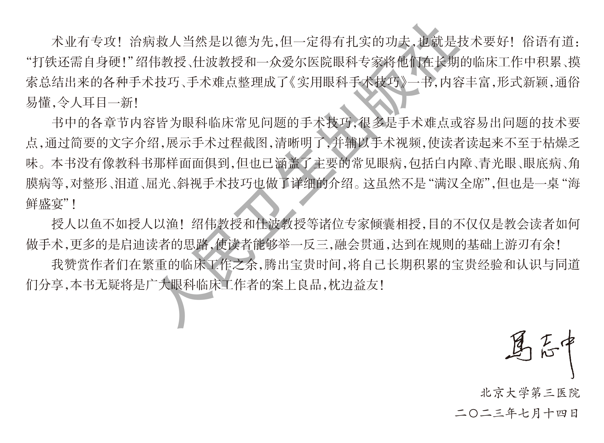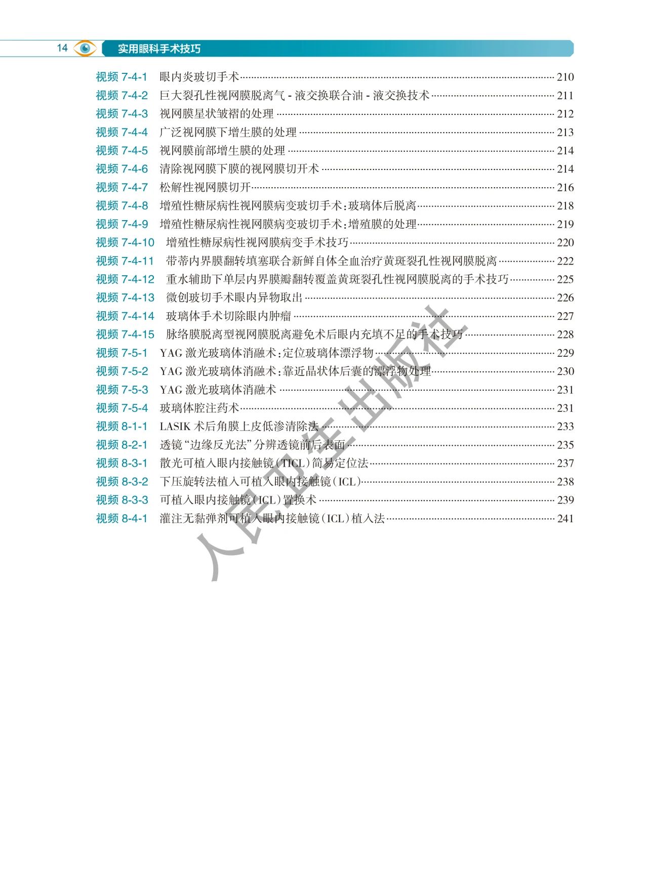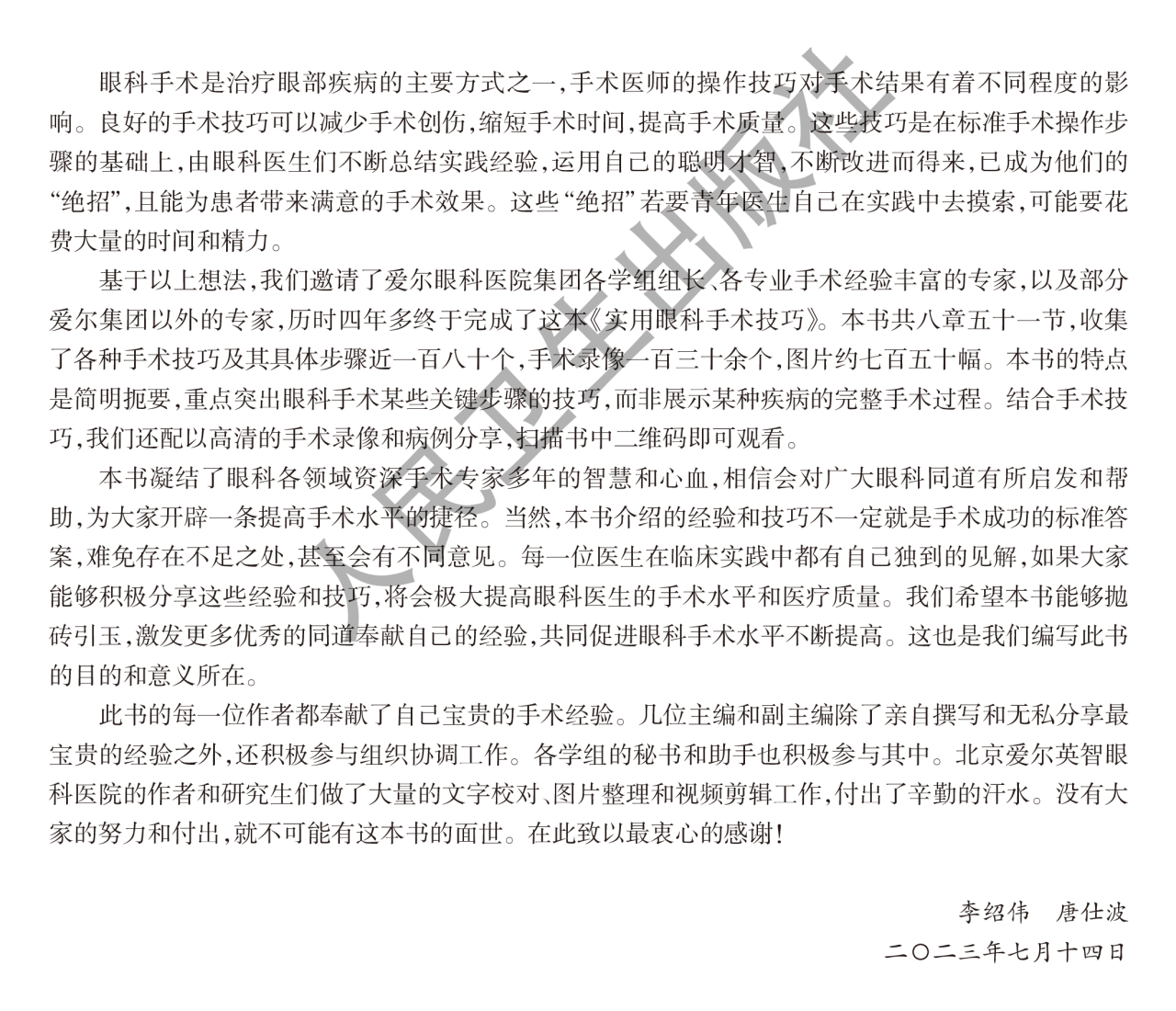 本书由爱尔眼科医院集团手术经验丰富的专家及部分爱尔集团以外的专家,历时四年多编写而成。全书共八章五十一节,收集了各种手术技巧及其具体步骤近一百八十个,手术录像一百三十余个,图片七百五十余幅。简明扼要,重点突出眼科手术某些关键步骤的技巧,而非某种疾病的完整手术过程。结合手术技巧,配以高清的手术录像和病例分享。相信会对广大眼科同道有所启发和帮助,为大家开辟一条提高手术水平的捷径。