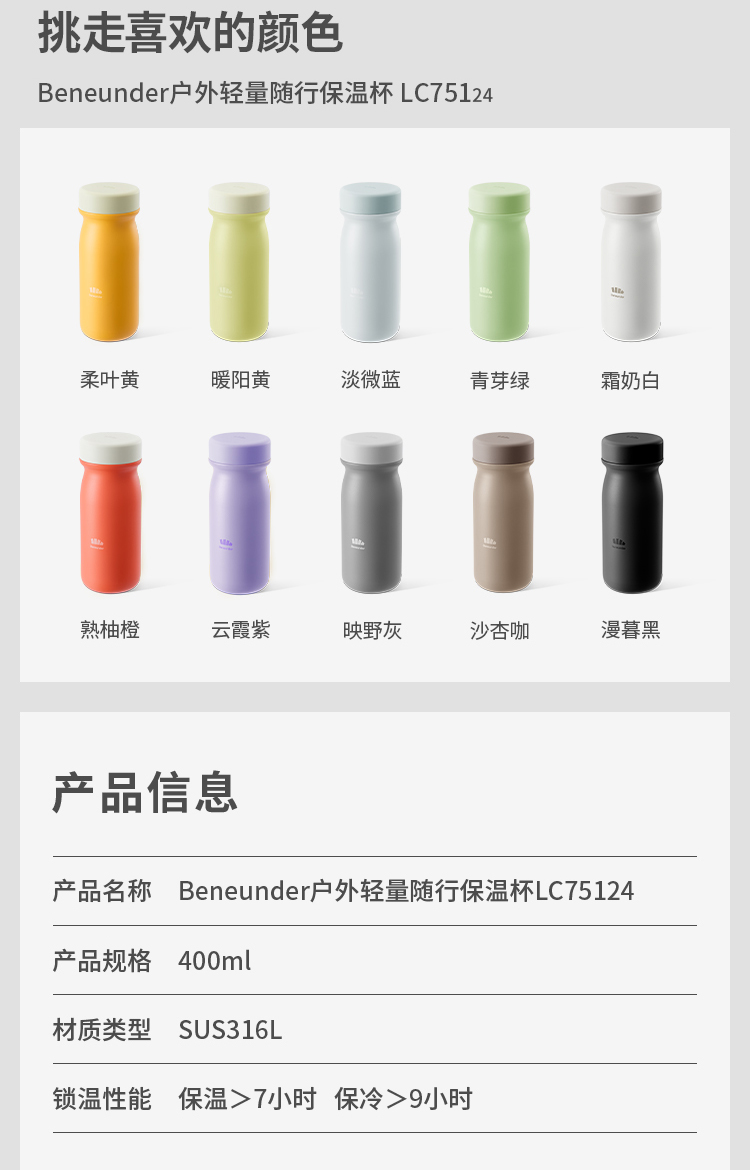 蕉下随行保温杯保冷LC75124不锈钢水杯小巧便携咖啡杯户外杯子