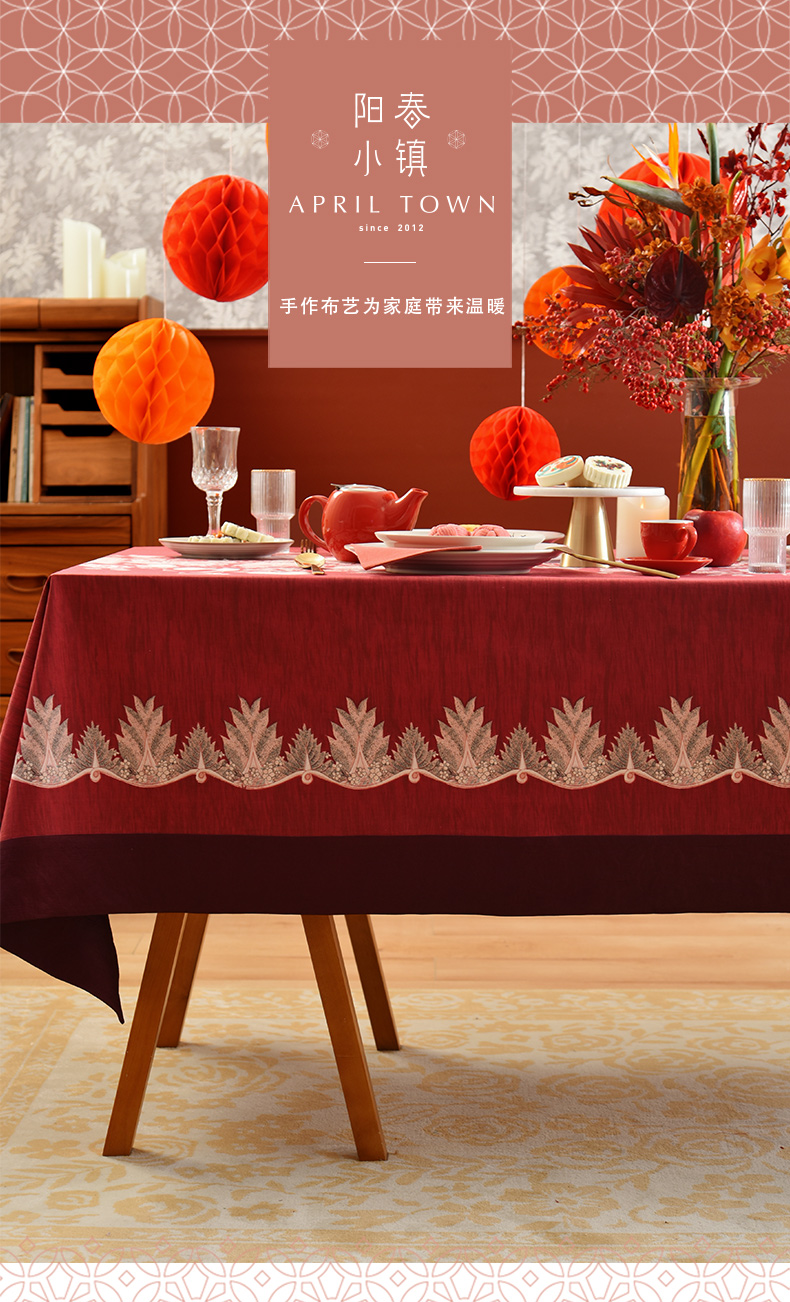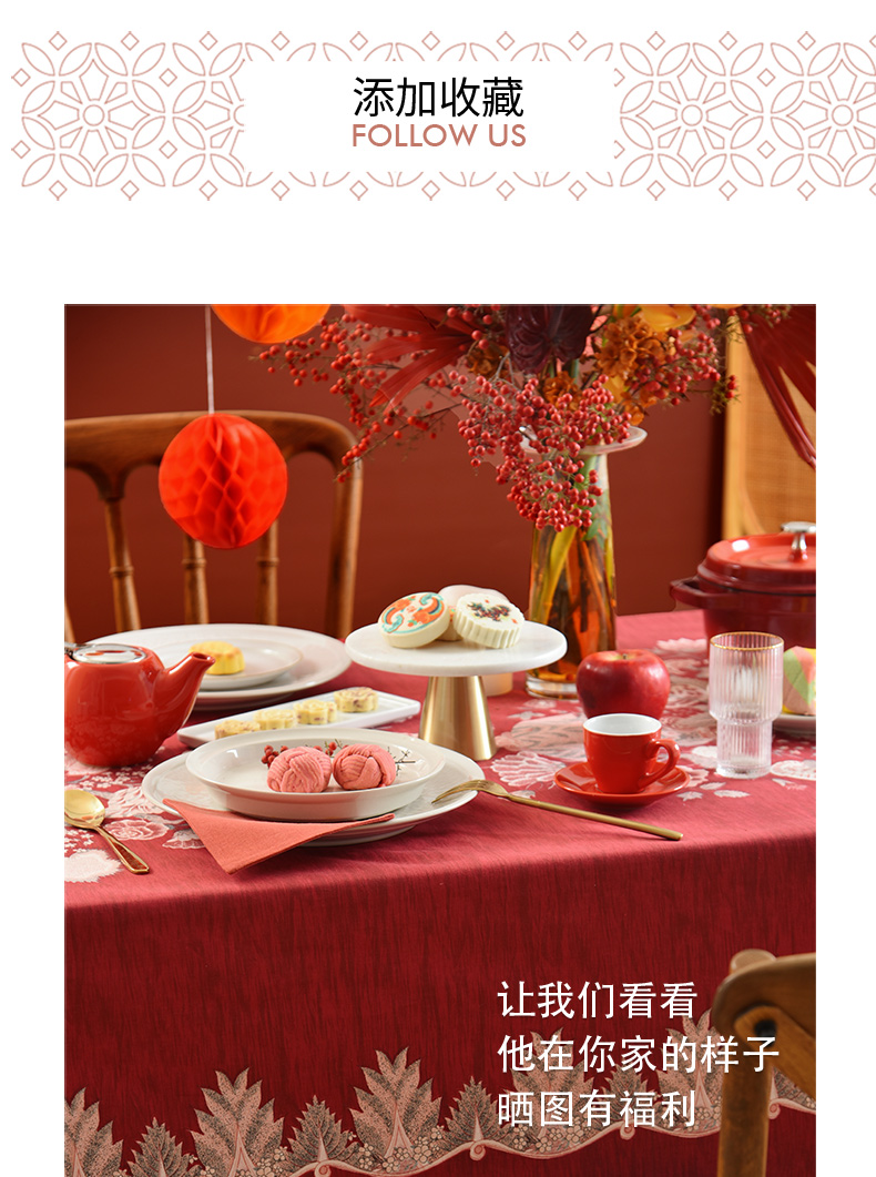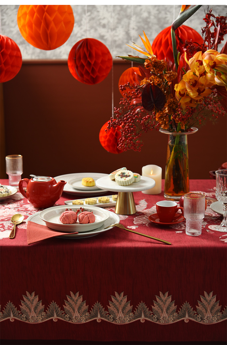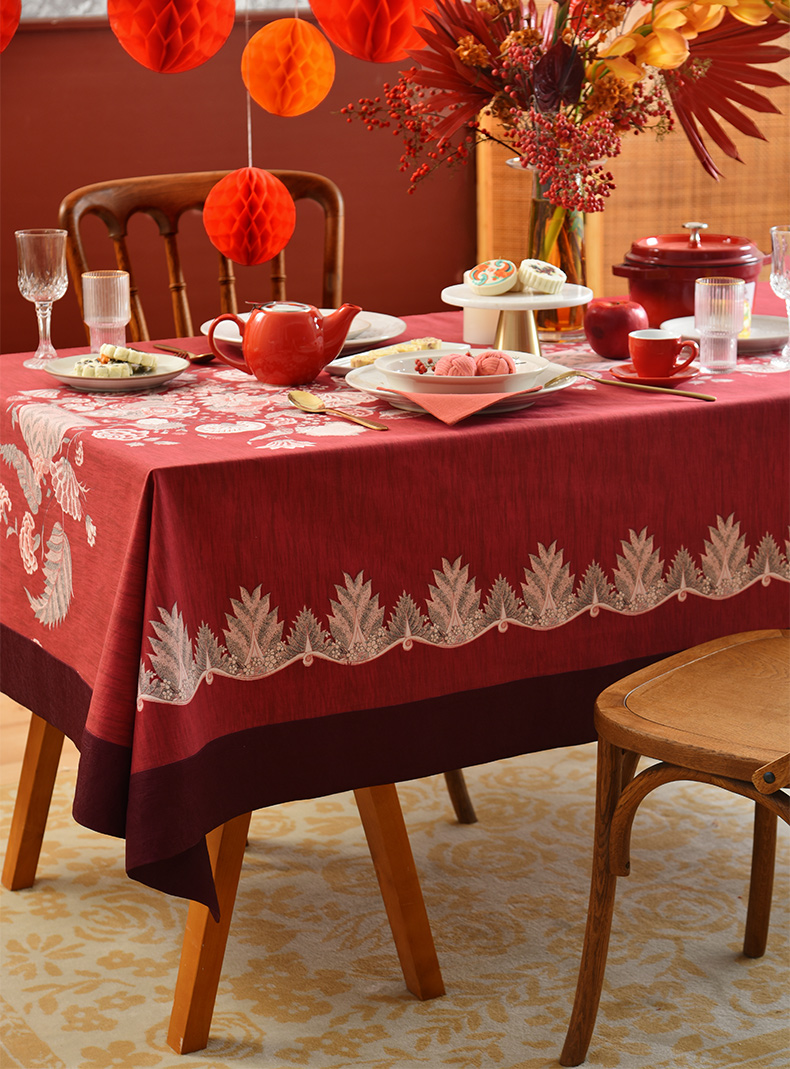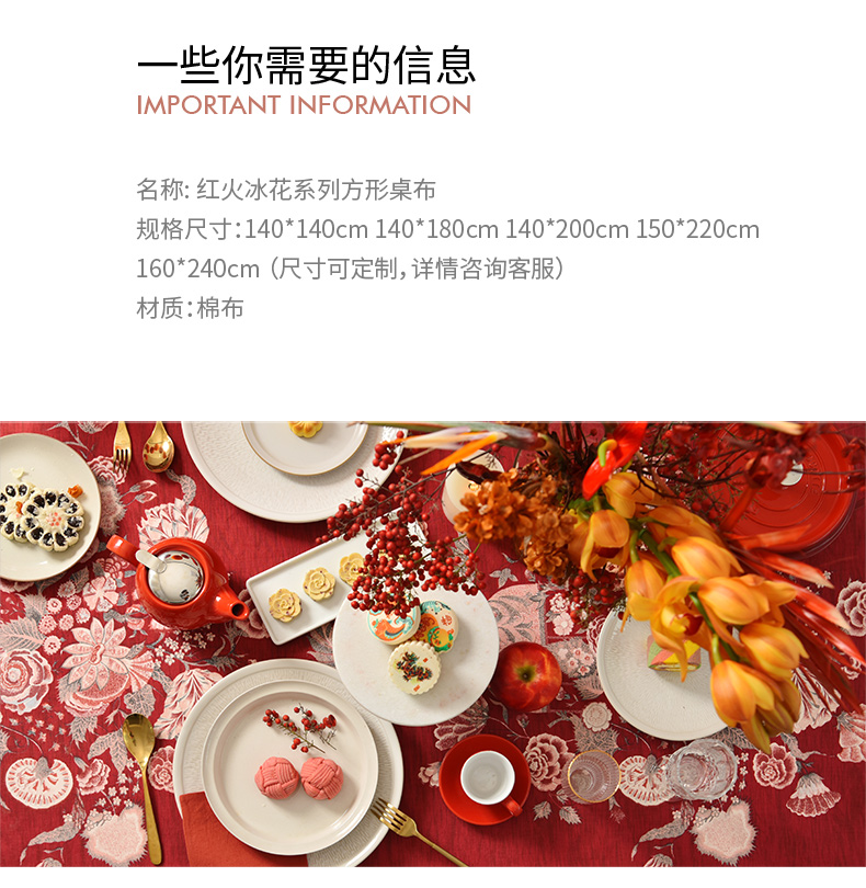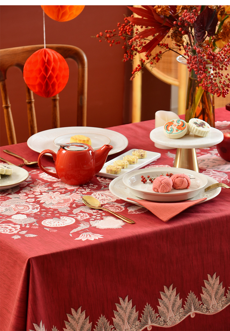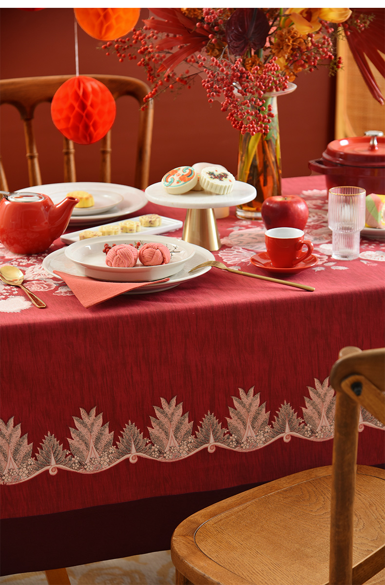 红火冰花红色新年方桌布轻奢高级感餐桌客厅氛围感桌布