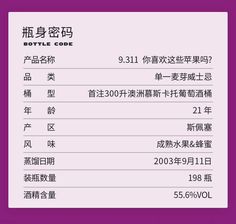 SMWS 苏格兰麦芽威士忌协会 9.311 你喜欢这些苹果吗?
