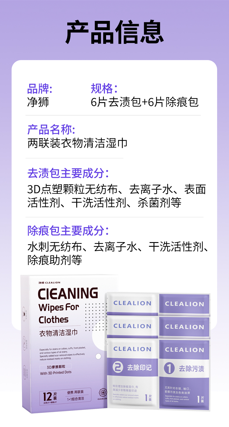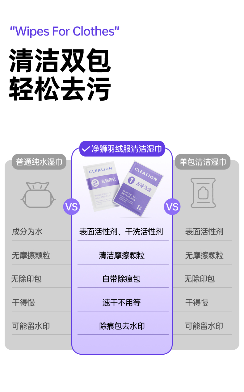 净狮羽绒服衣物清洁湿巾去污除痕2联装-2盒4盒