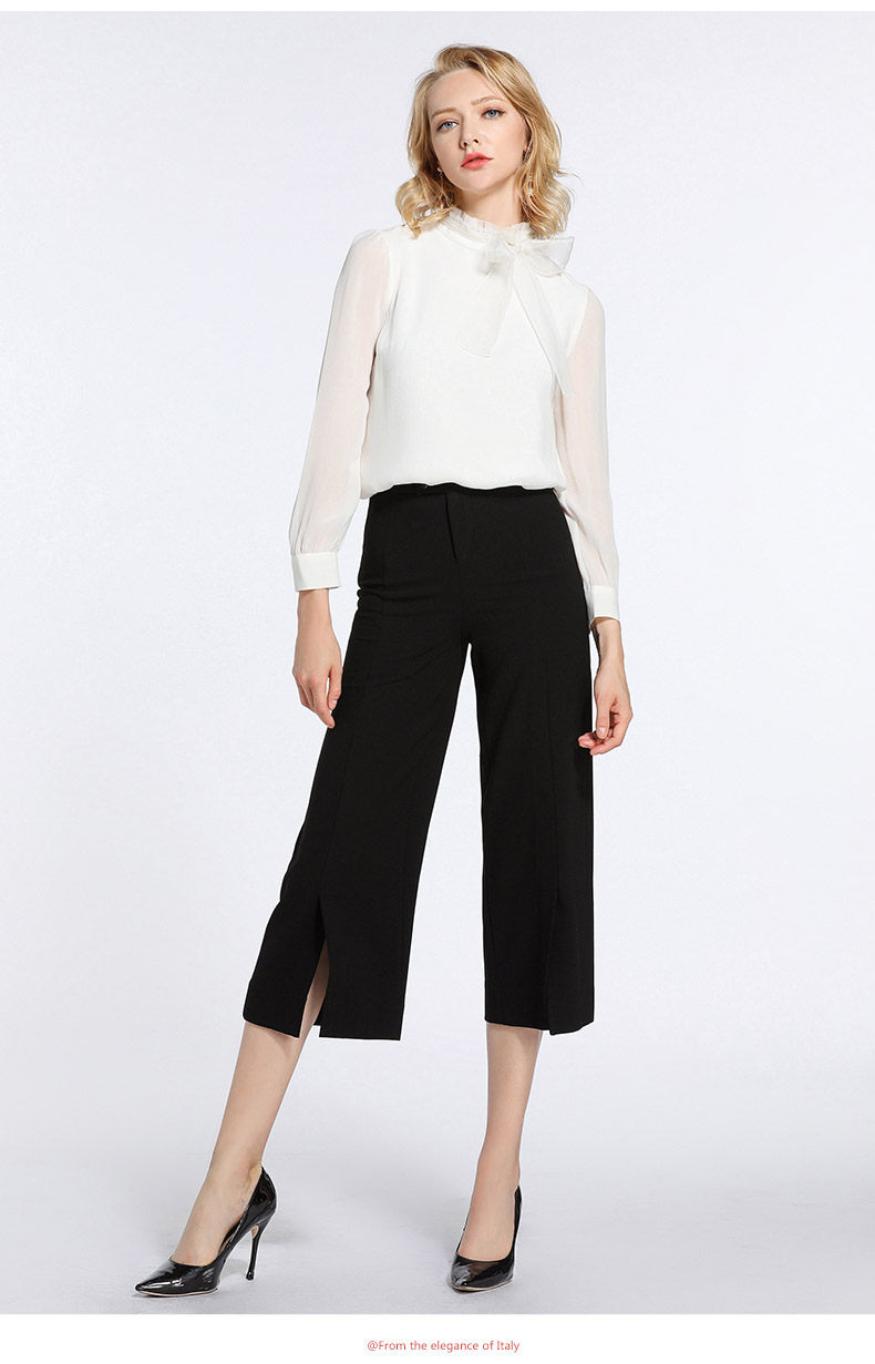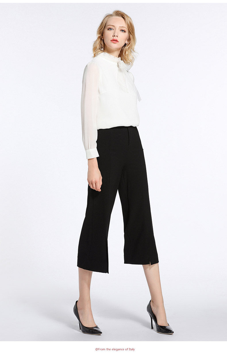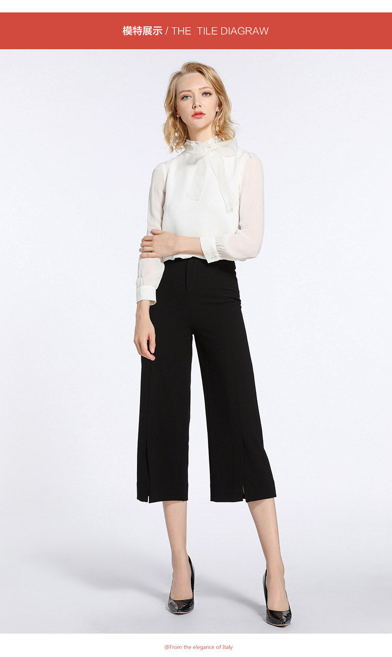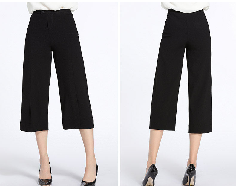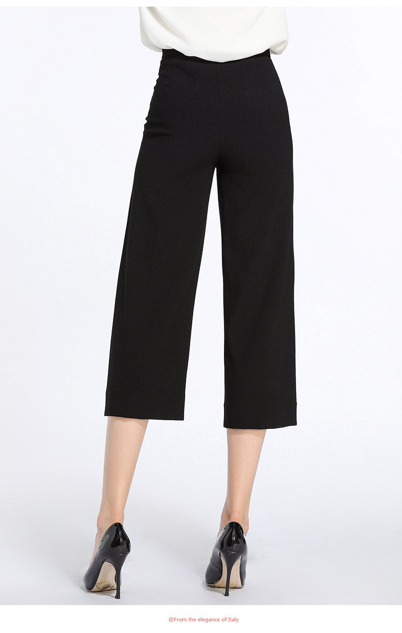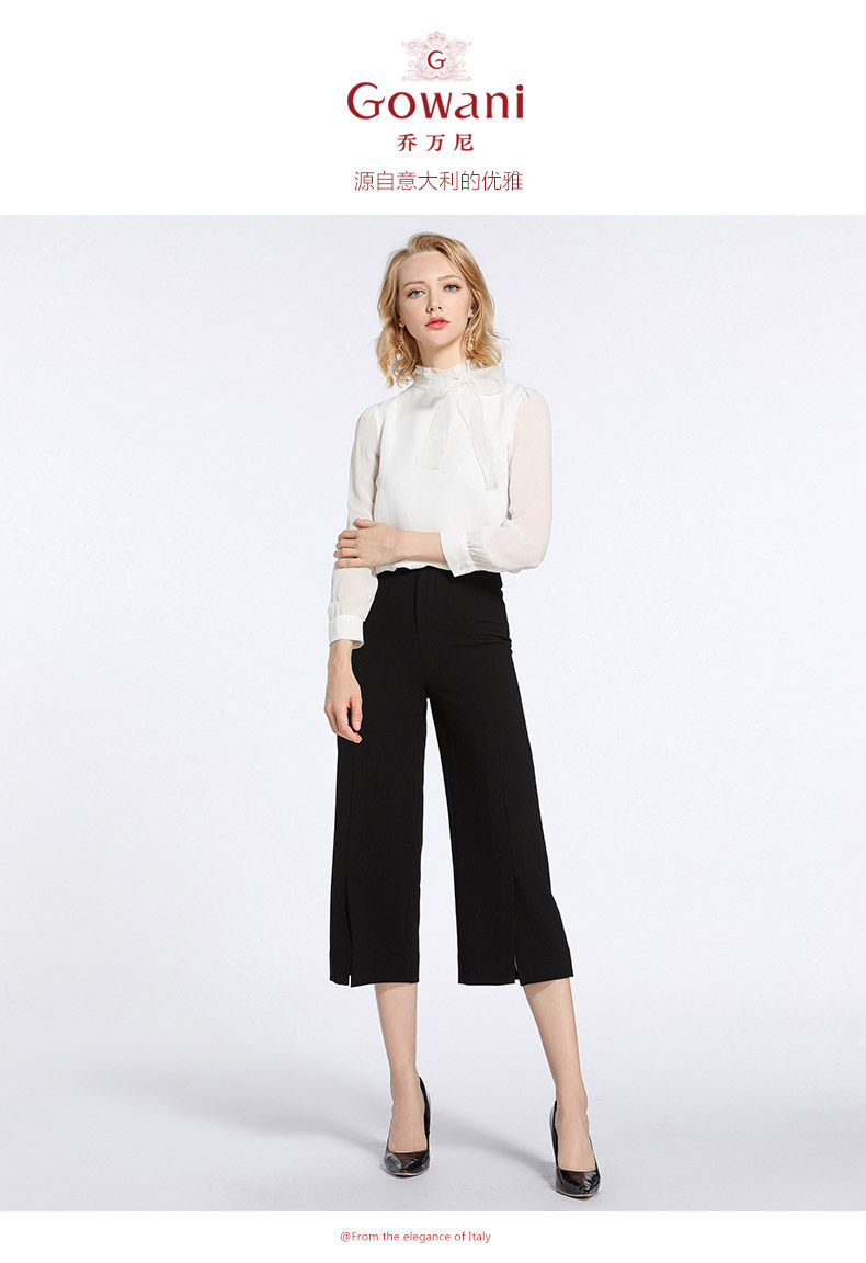 乔万尼春季裤子女时尚百搭宽松高腰显瘦七分黑色阔腿裤EB3F270