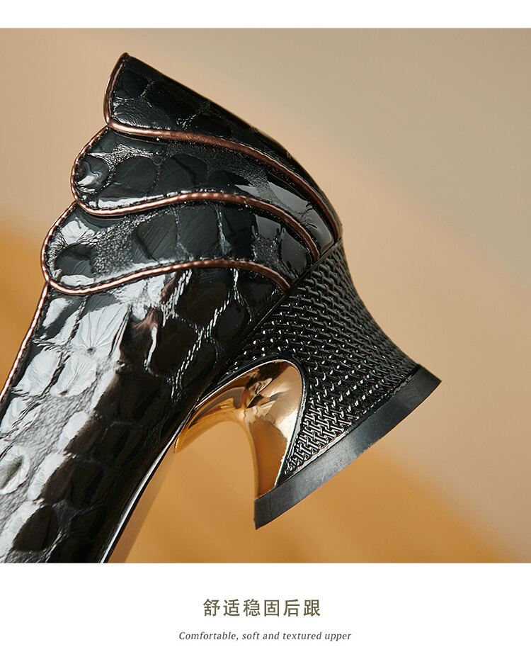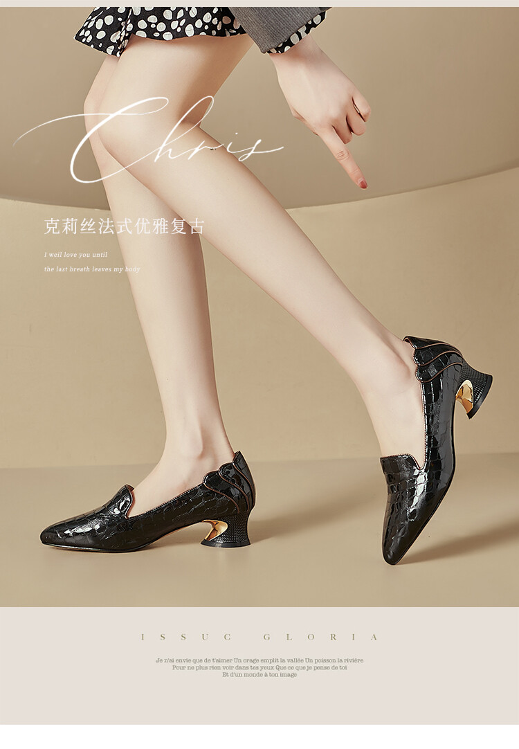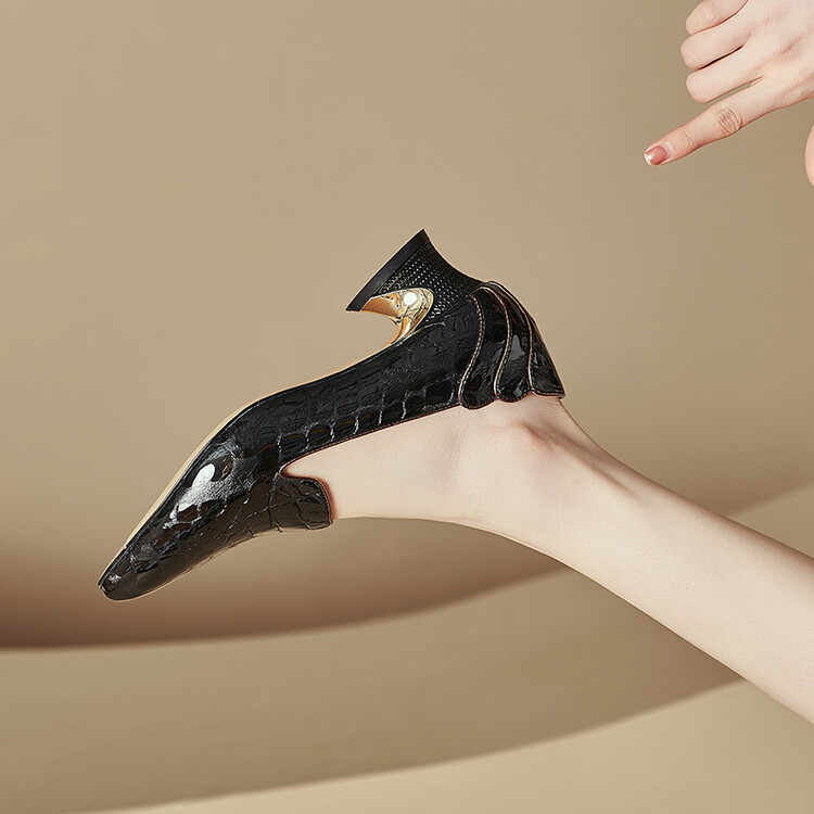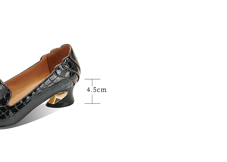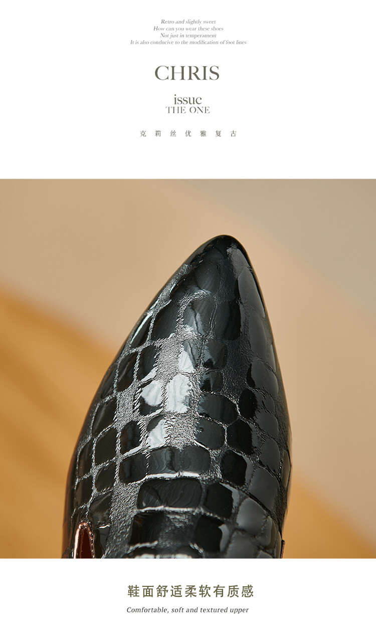 型号:63011鞋头:尖头材质: 牛漆皮内里: 超细纤维膛底: 超细纤维鞋底:牛筋大底跟高: 4.5cm鞋码:34-40(大小定制不退换)颜色:黑色