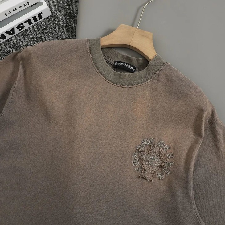 定制面料300克双纱!美式酸洗做旧元身布激光烧花✟贴布绣 字母精致刺绣!