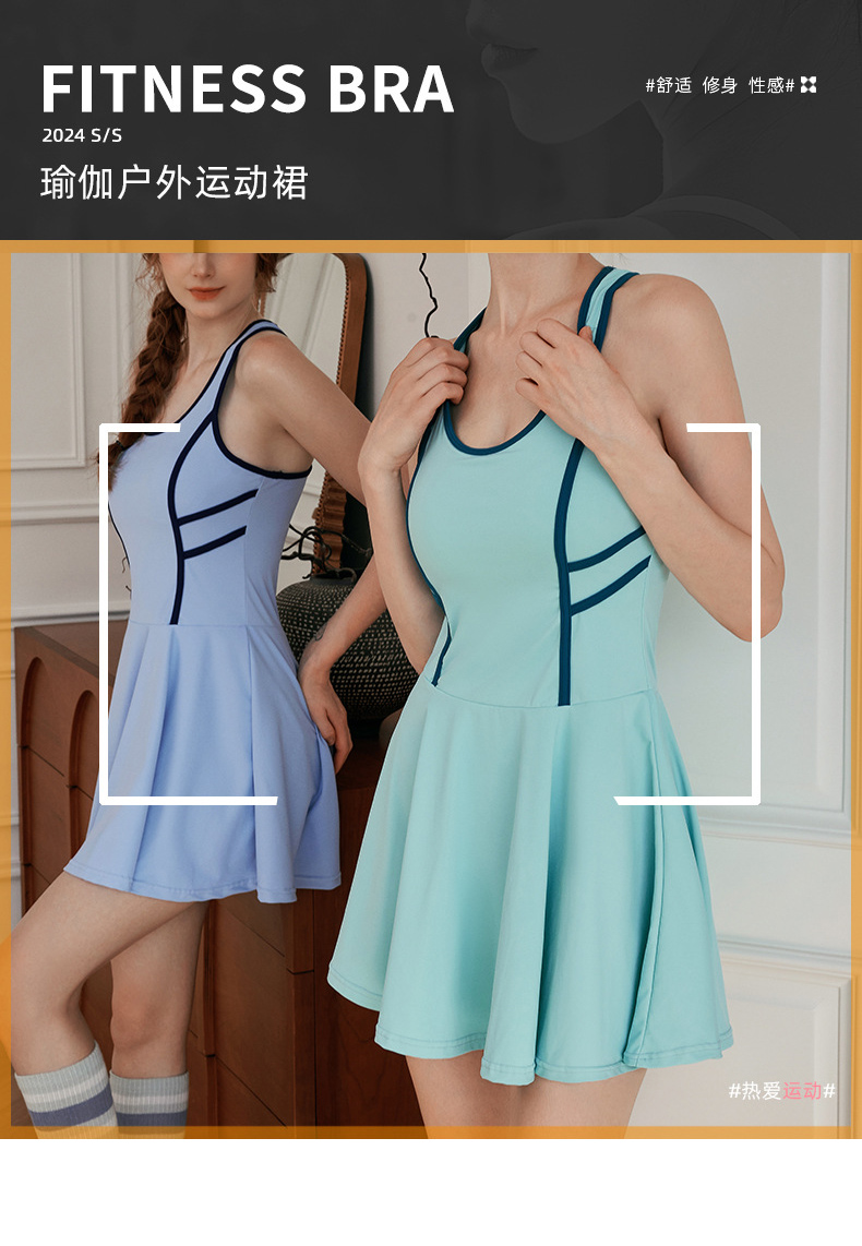 跃牌【洛水之神系列】裸感防走光打底运动连衣裙女夏季新款短裙321