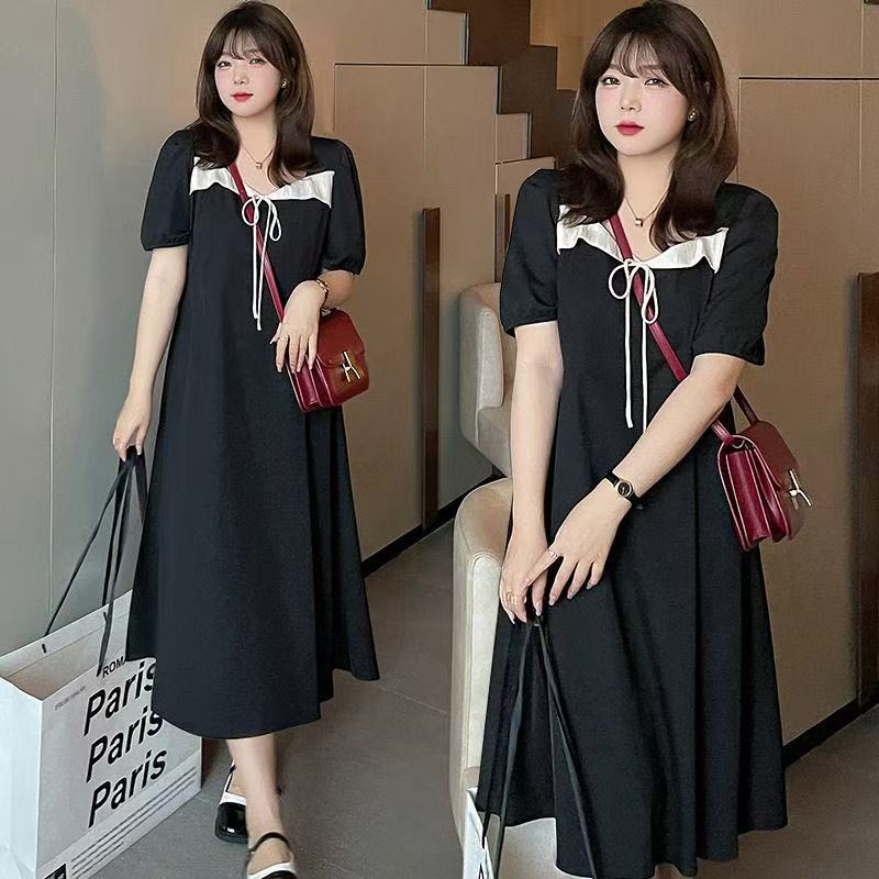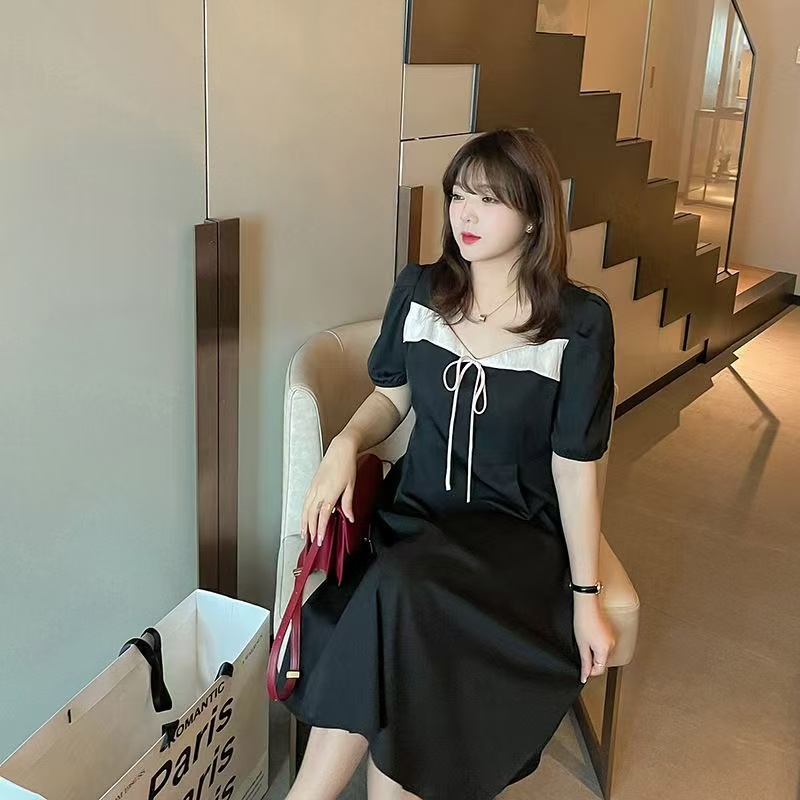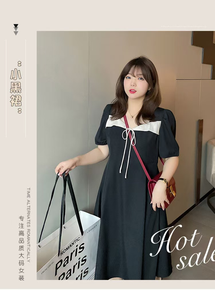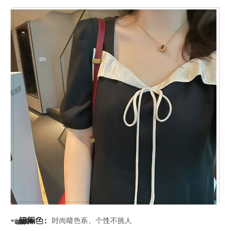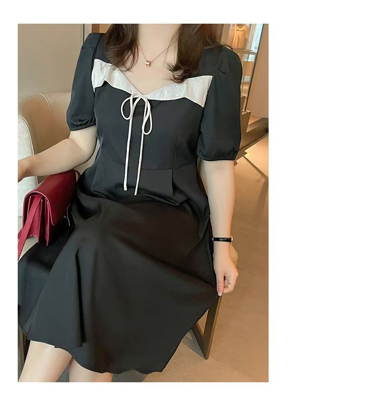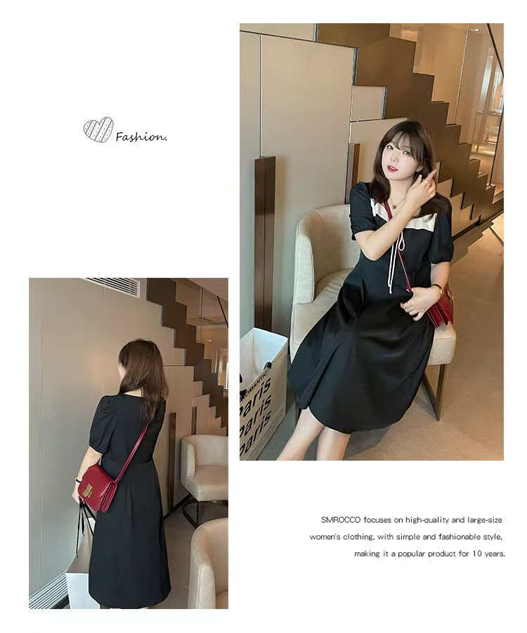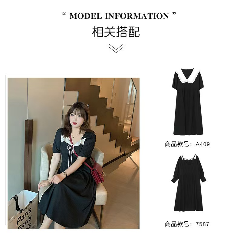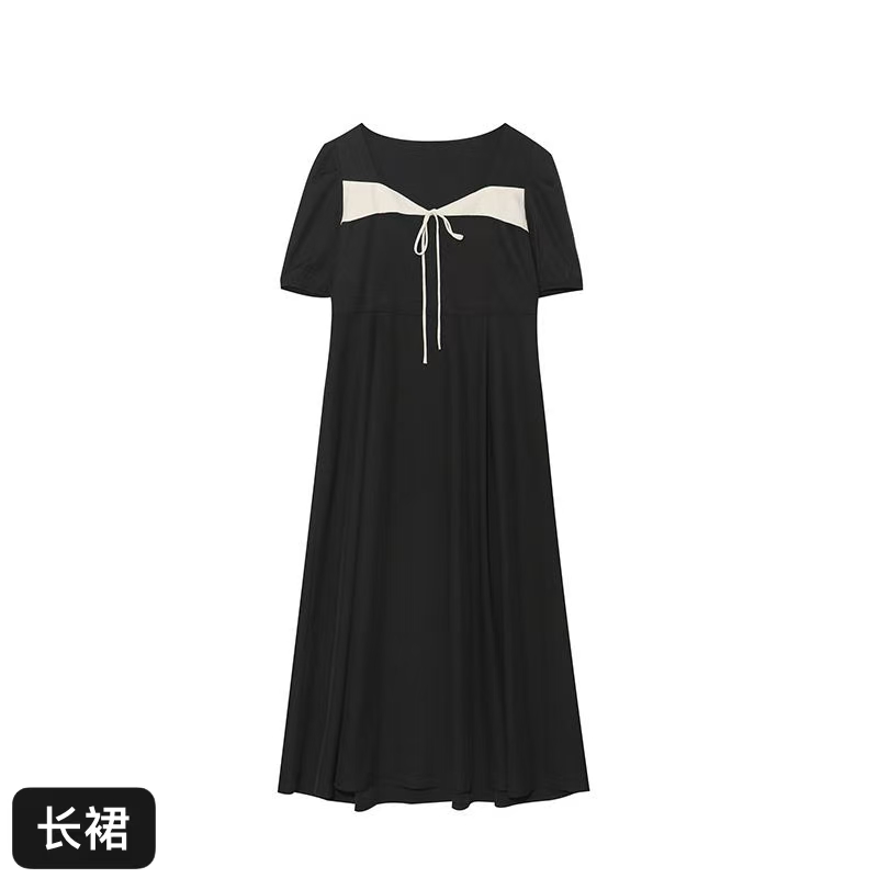 【诗铭洛可】XC2268连衣裙撞色领口小黑裙B14-1长款/B16-3短款