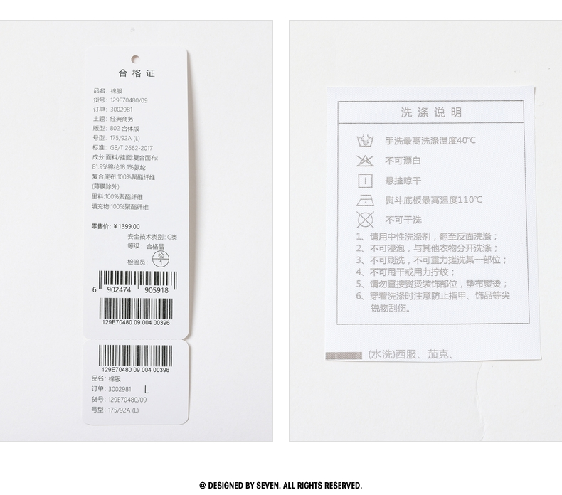 【无缝工艺】柒牌棉衣秋冬中长款时尚休闲中青年冬季保暖外套男装129E70480
