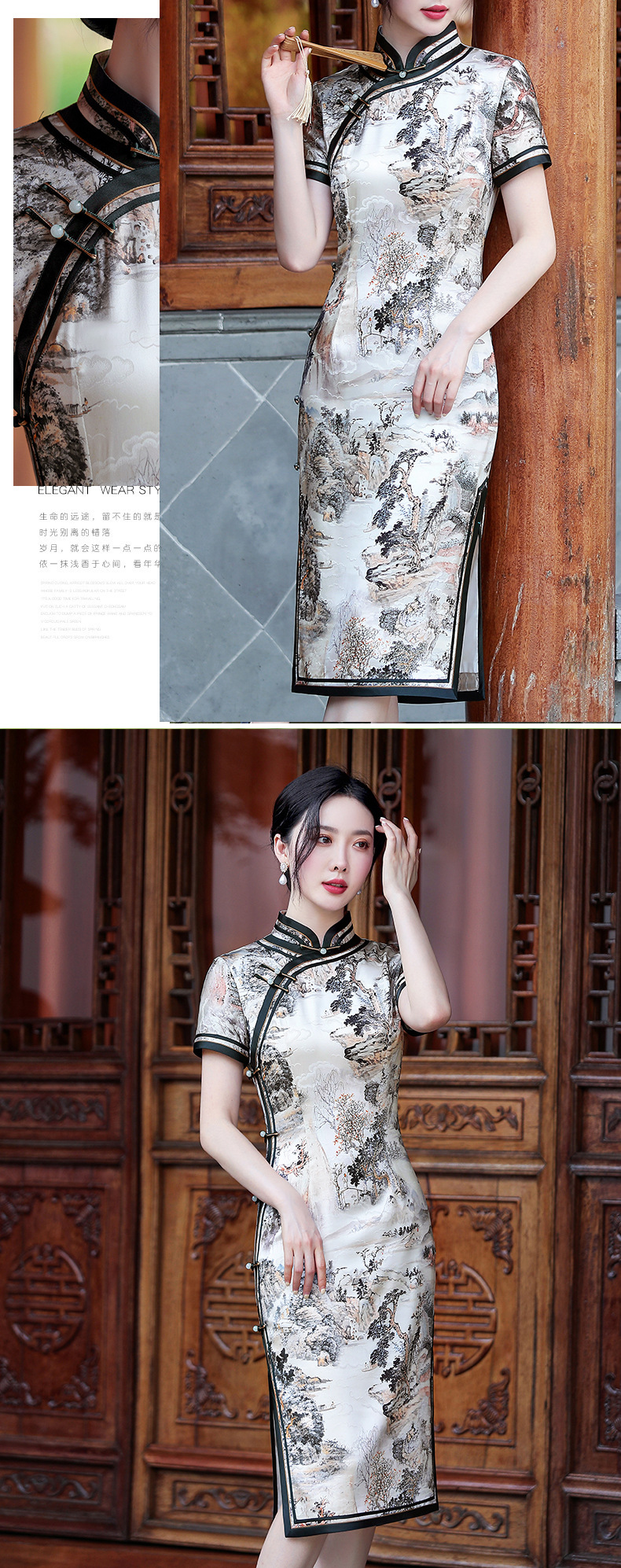 时尚修身复古,桑蚕丝真丝旗袍TY-JYJ-110
