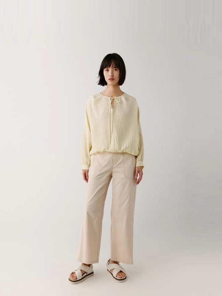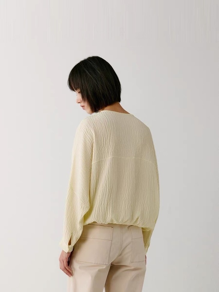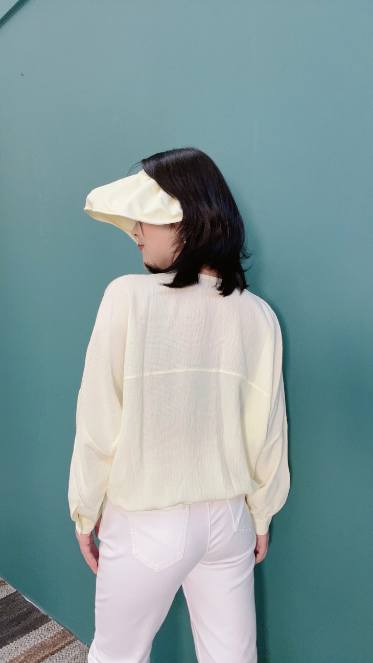 之h同款-花花团篙端成衣供应链定制款,100桑蚕丝珍珠锻蝙蝠袖,轻盈轻薄亲肤透气,抗皱好打理,宽松廓形春夏秋防晒长袖上衣