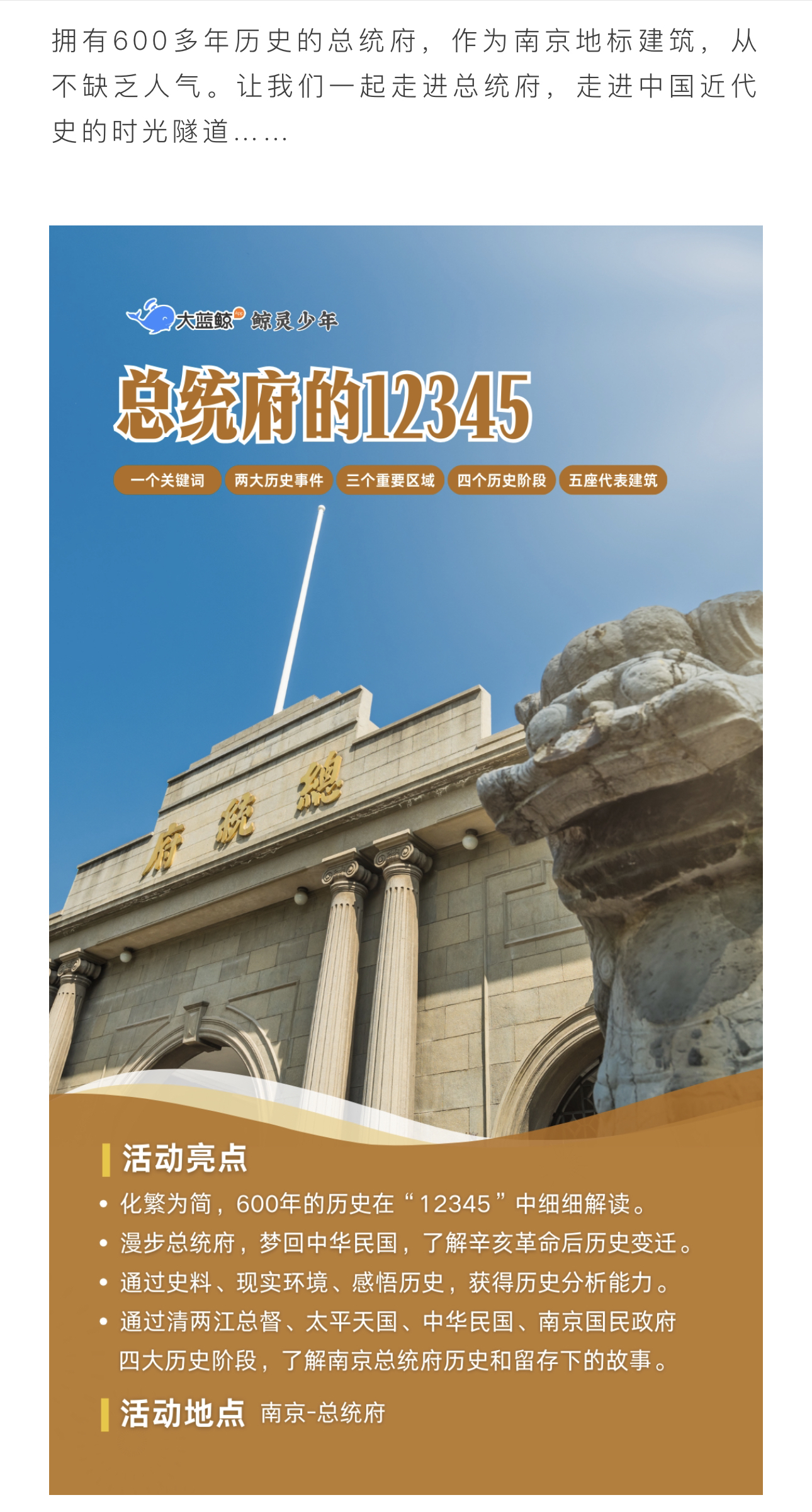 大蓝鲸爱研学 |【独立半日营】漫步南京总统府:从汉王府到总统府,穿越600年,听建筑述说近代史!