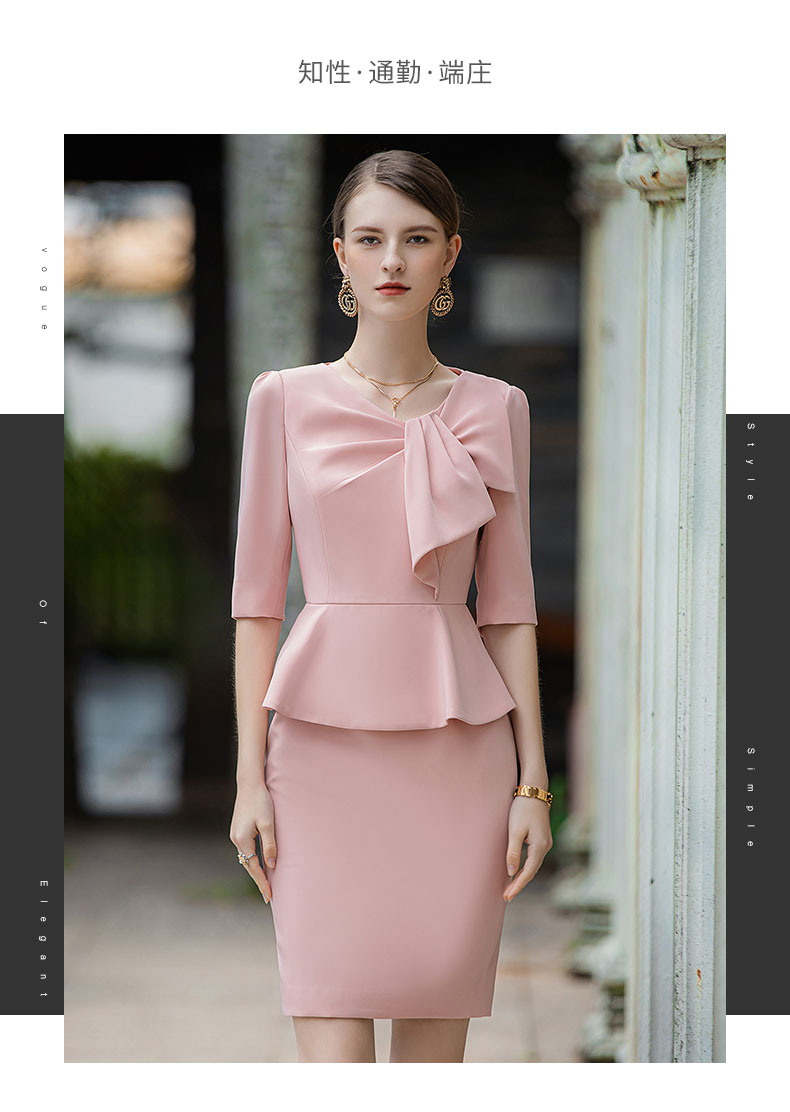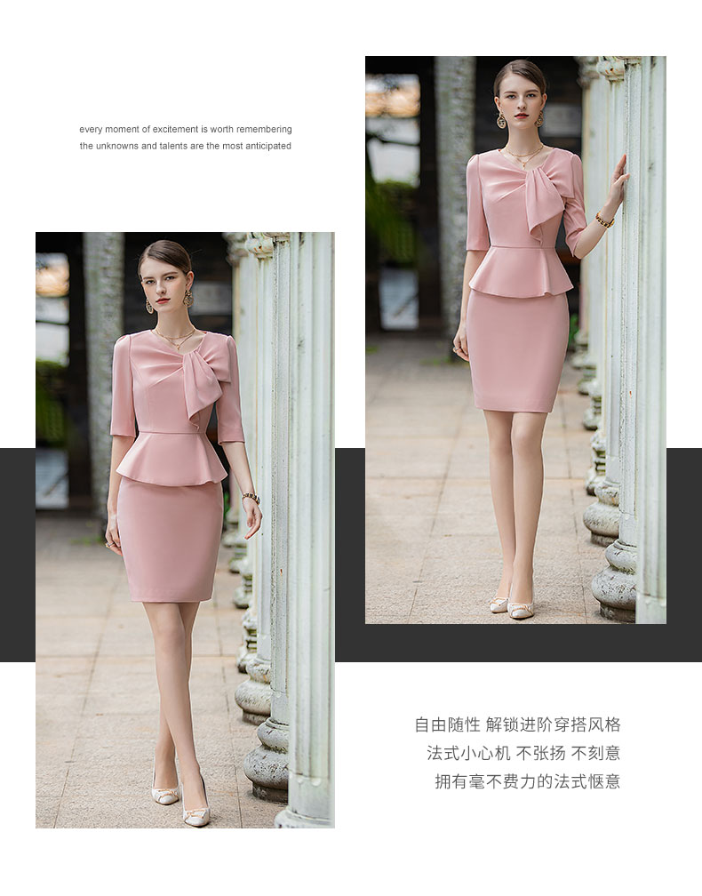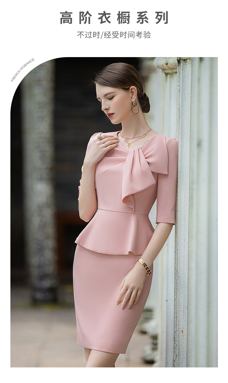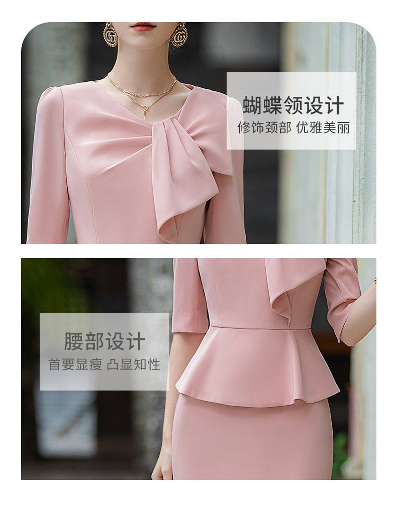 IWY/粉色连衣裙女夏季新款收腰显瘦名媛气质美容院前台接待工作服Q929