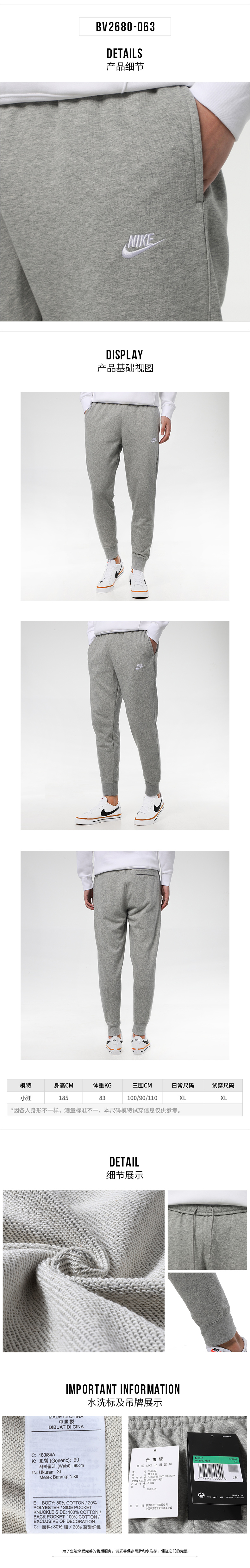 NIKE耐克男裤长裤浅灰色休闲裤新款宽松跑步运动裤 BV2680-063