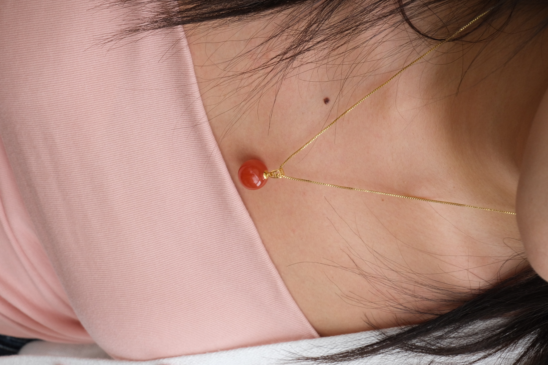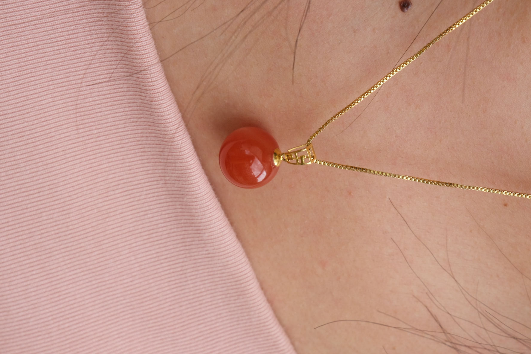 卖点:南红在金色链子的衬托下,更显高贵大气 。抬气色,圆润的珠子形状,寓意着圆满、周全。无论是搭配日常的简约白T,突显随性自在;还是搭配正式的小黑裙,增添优雅气质。