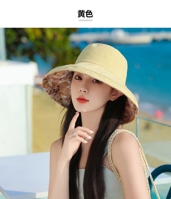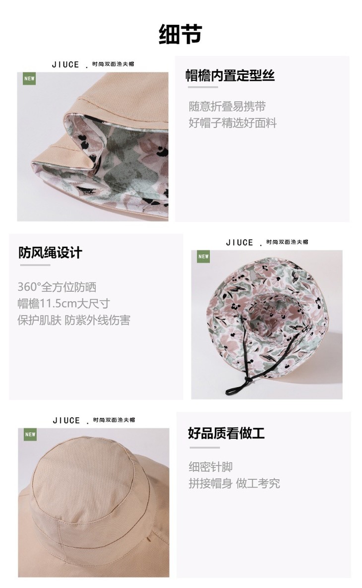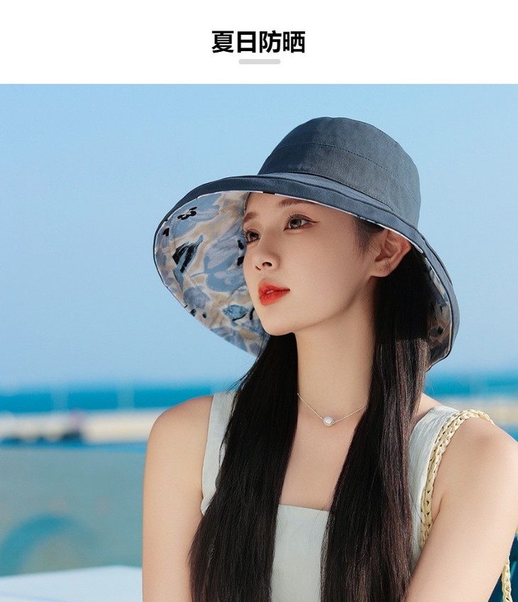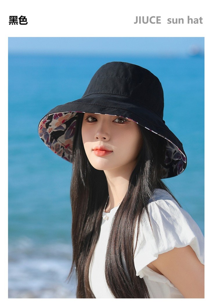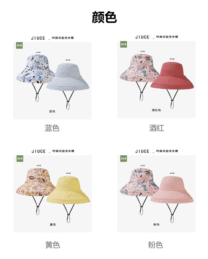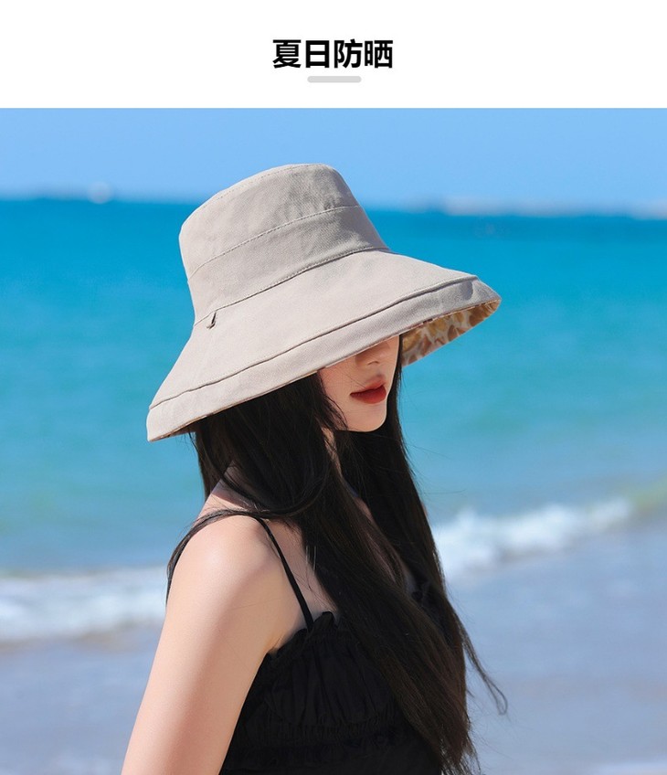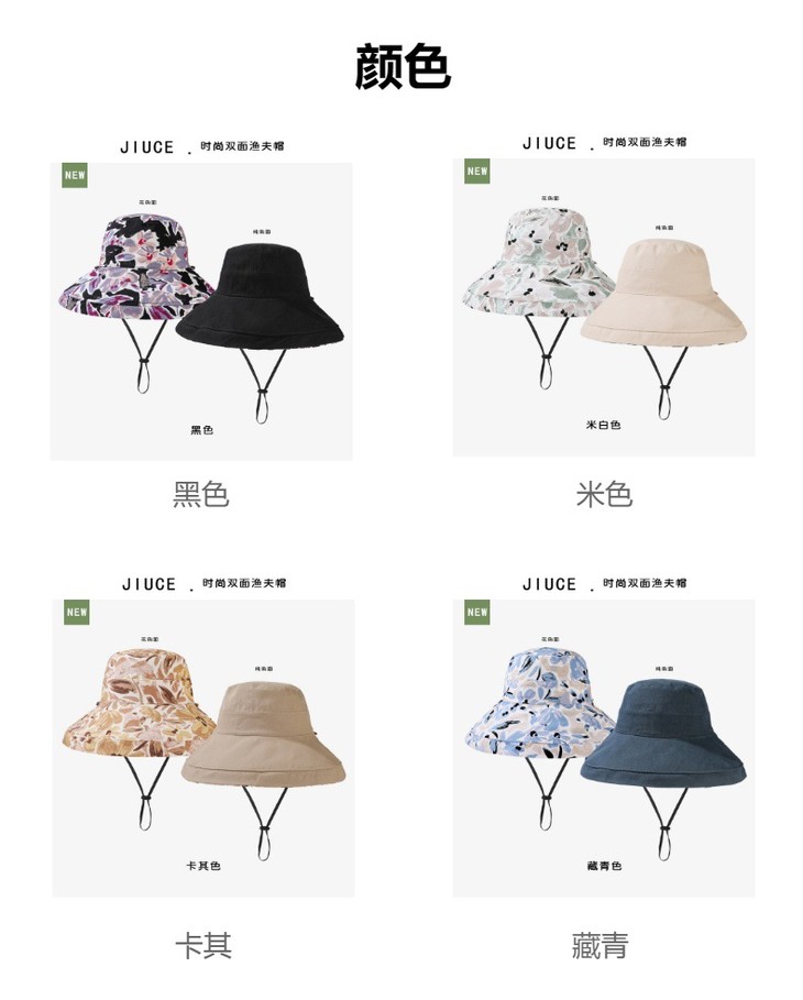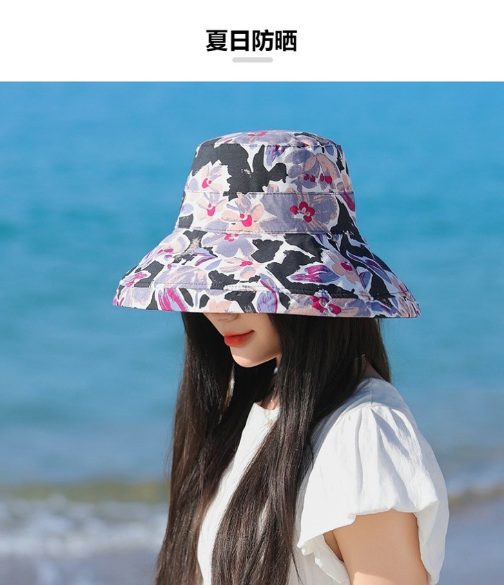 双面戴渔夫帽,韩国春夏新款印花大沿遮阳帽JC-M2835