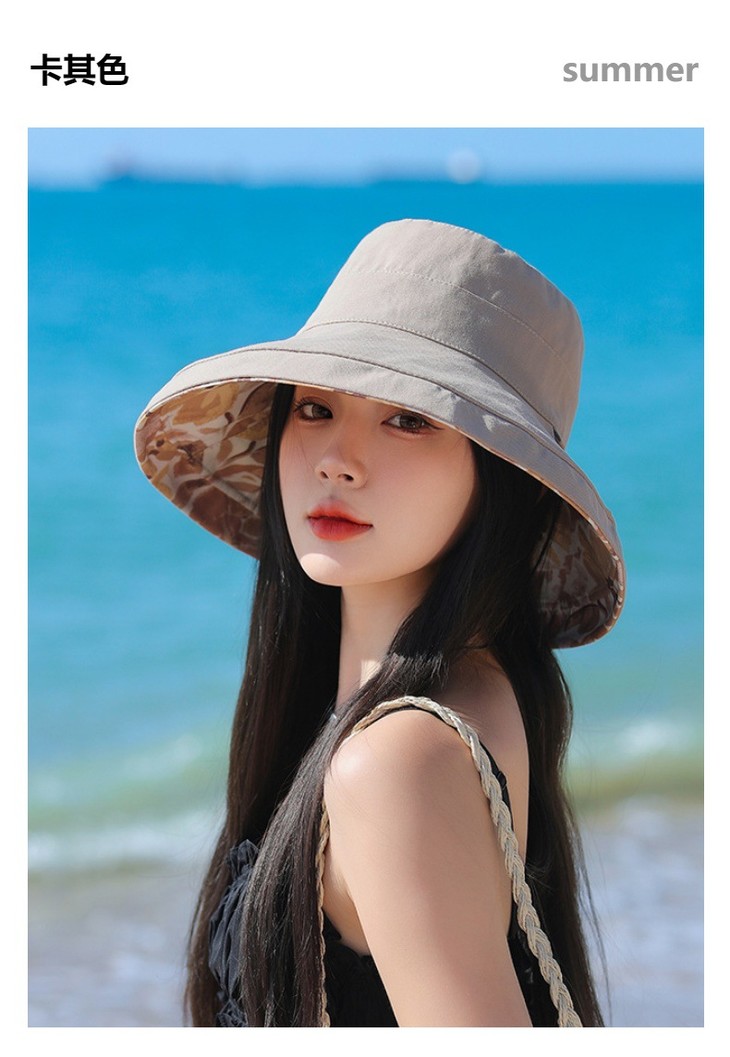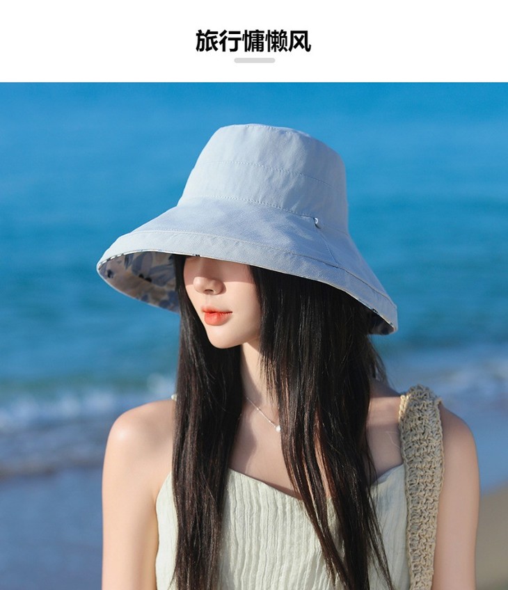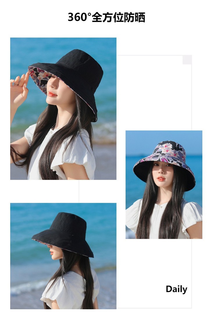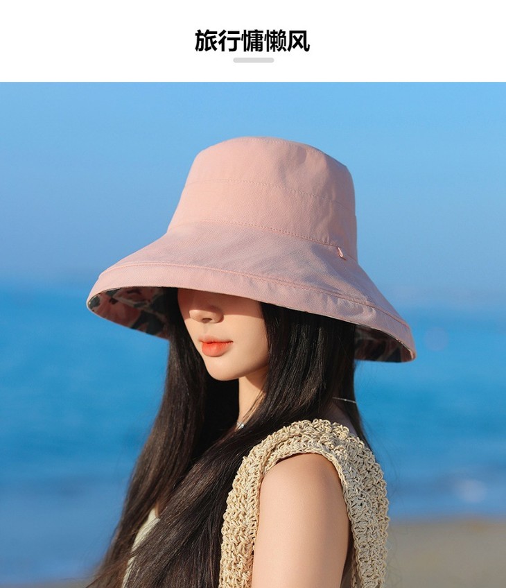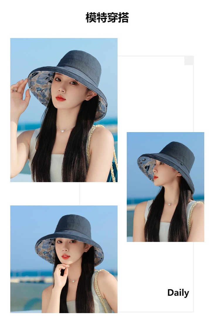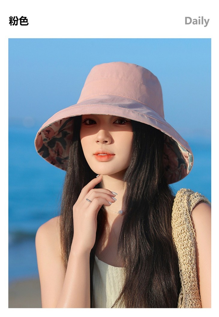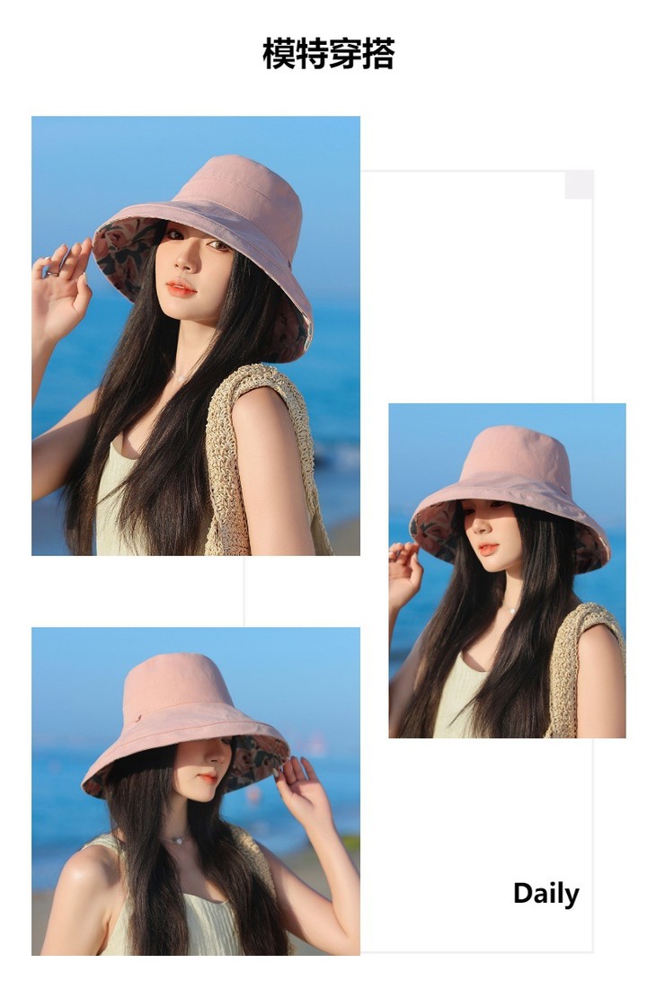 双面戴渔夫帽,韩国春夏新款印花大沿遮阳帽JC-M2835
