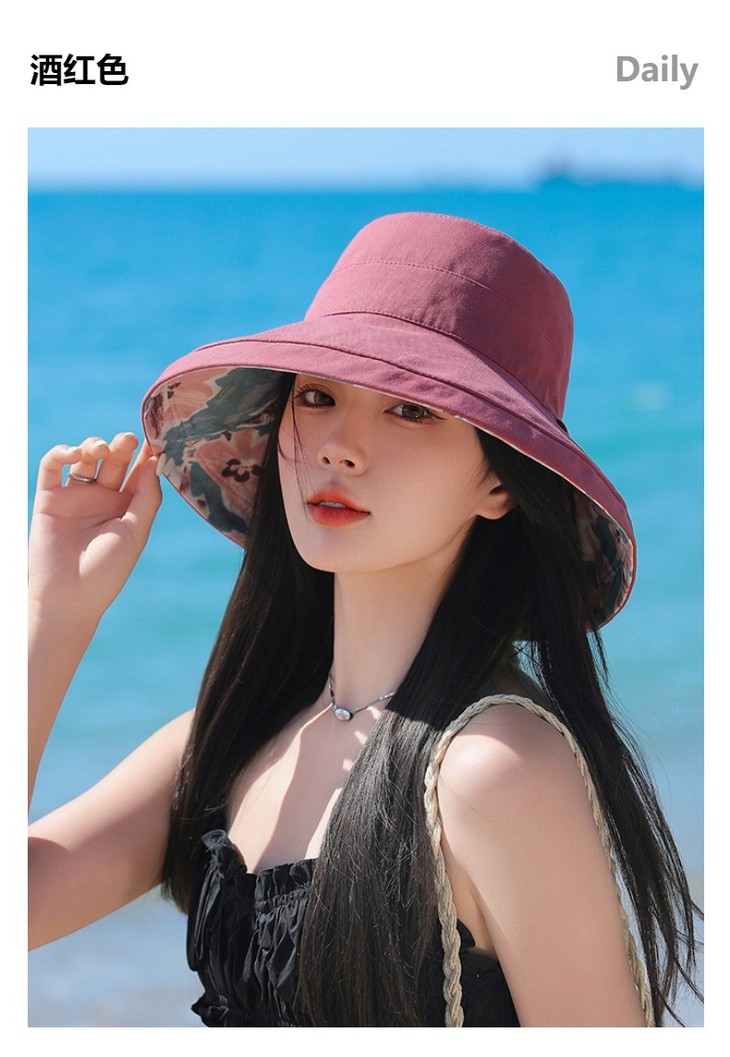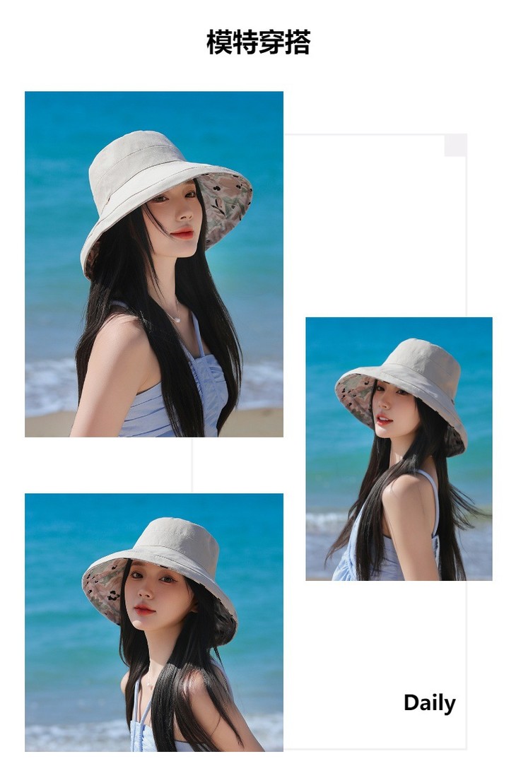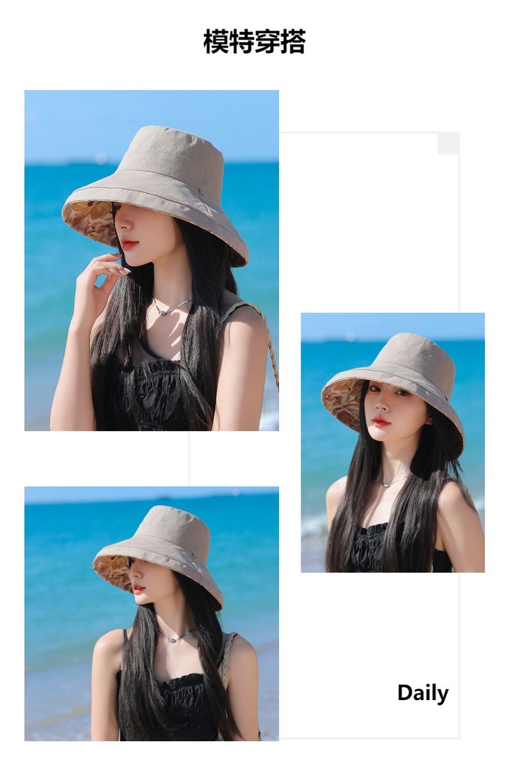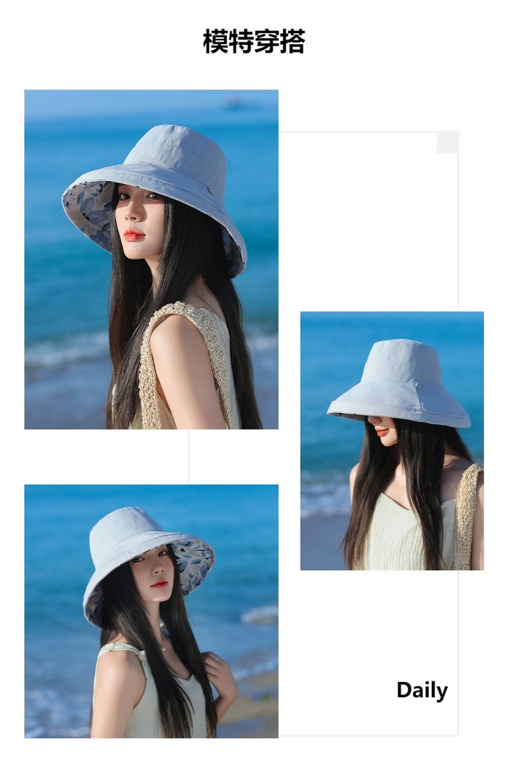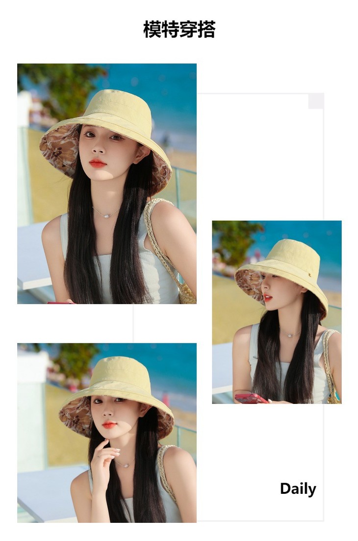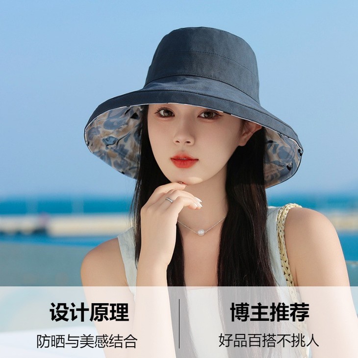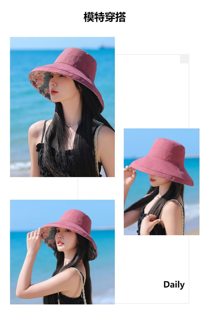 双面戴渔夫帽,韩国春夏新款印花大沿遮阳帽JC-M2835