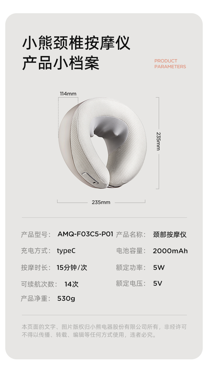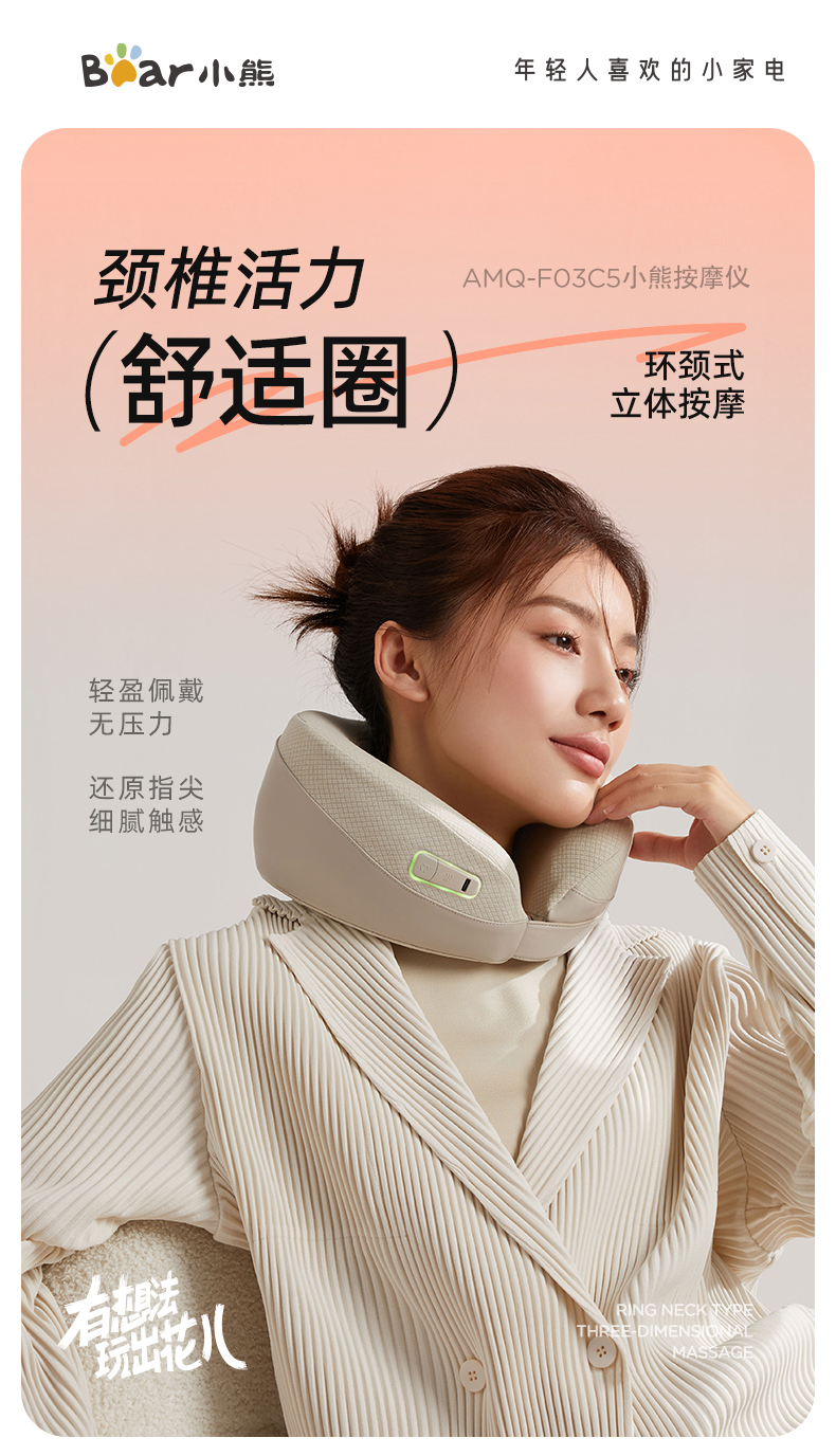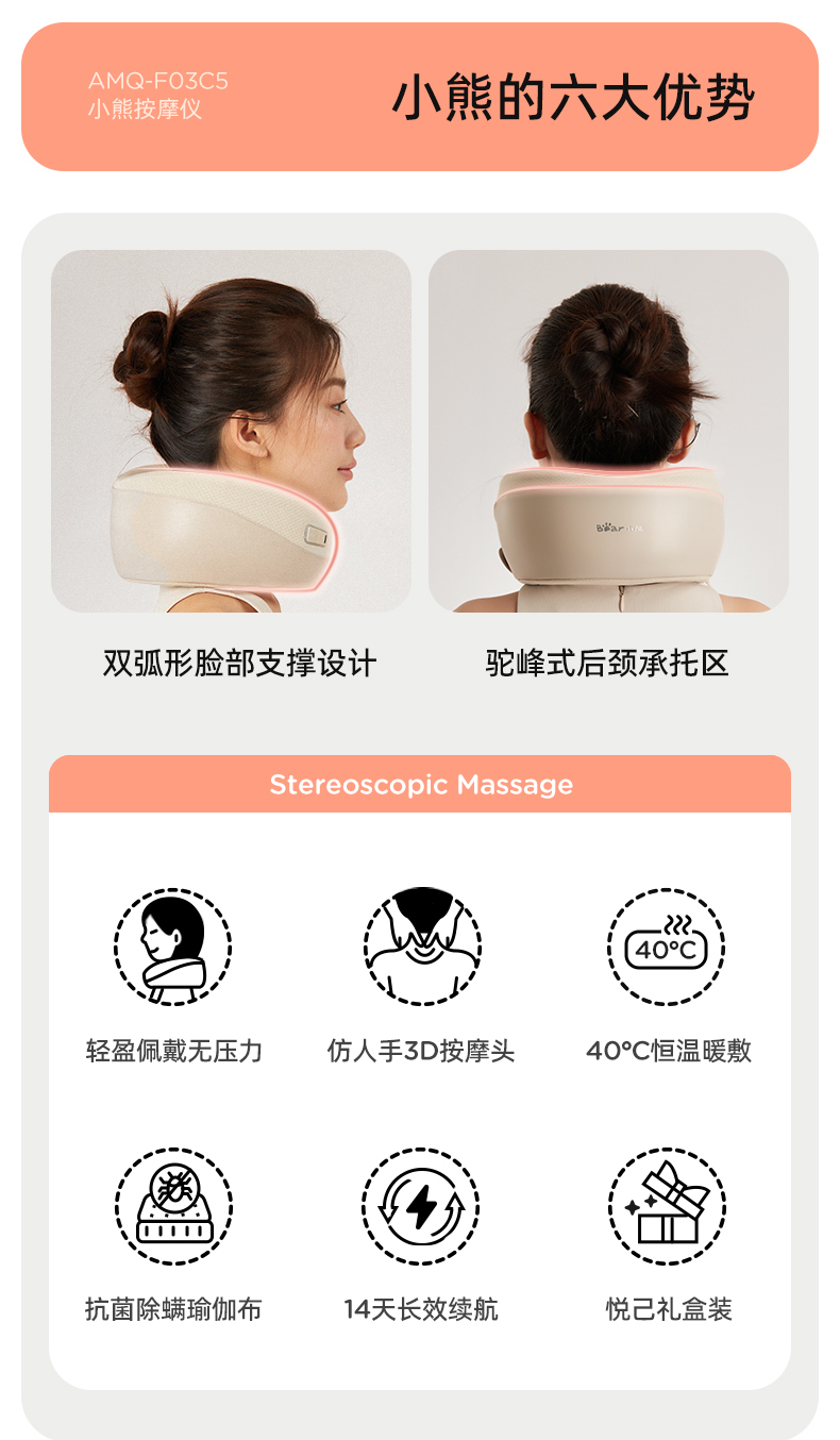 【小程序】小熊按摩仪(按摩枕) AMQ-F03C5 米黄色 热敷按摩 揉捏按摩