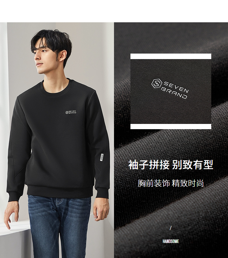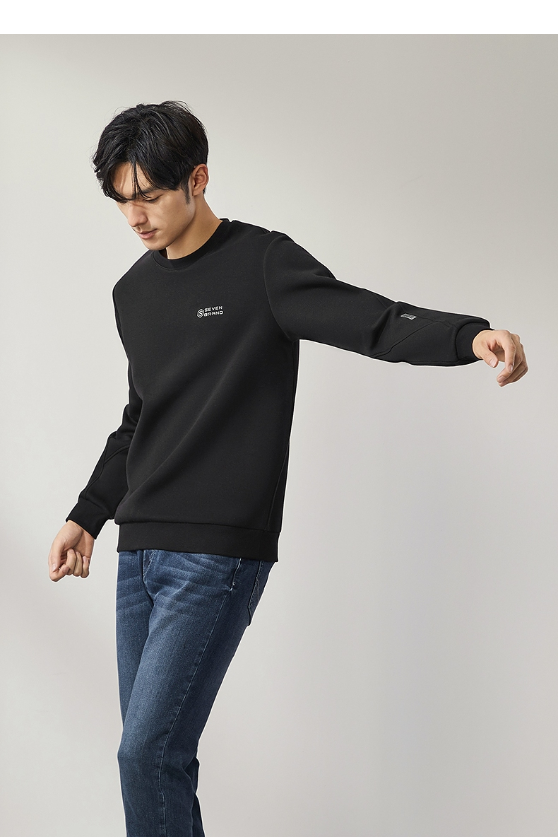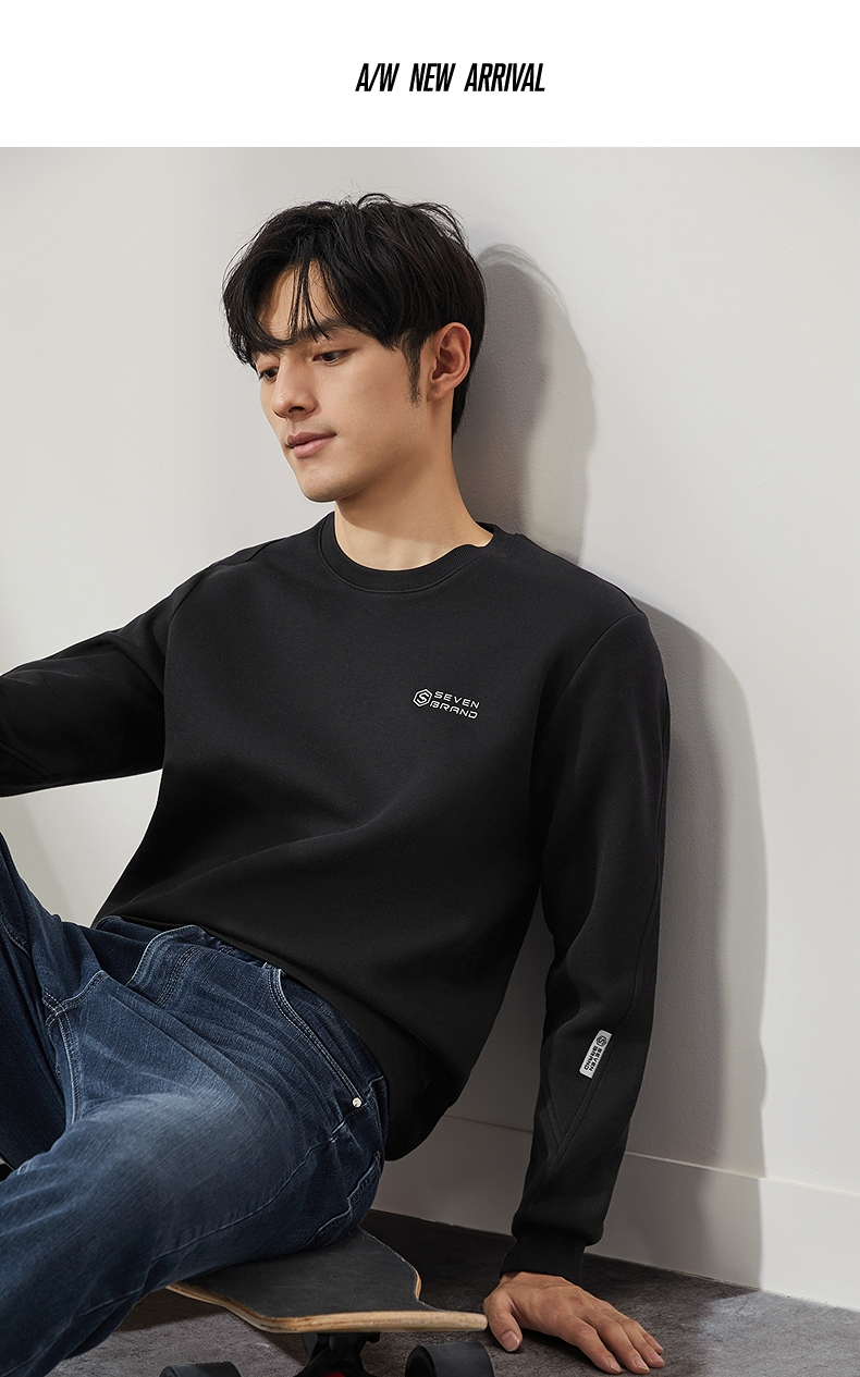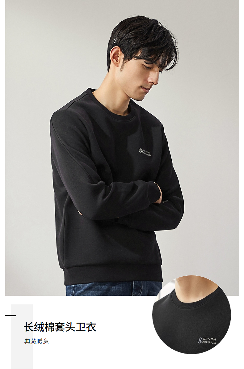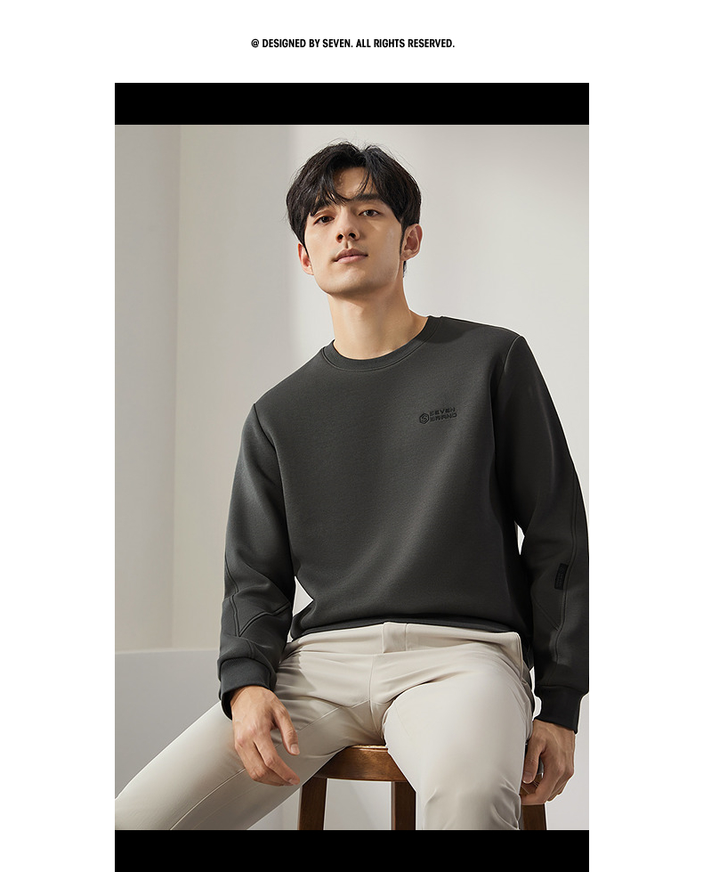 柒牌圆领卫衣男2024秋季新款时尚休闲中青年舒适百搭男士套头上衣 127W70110