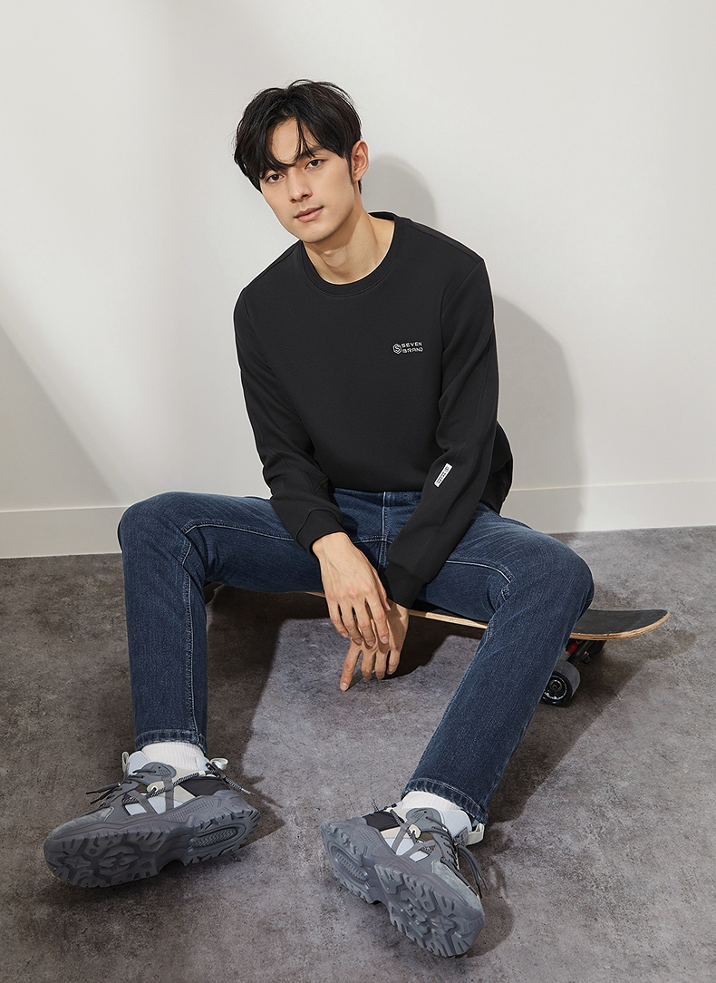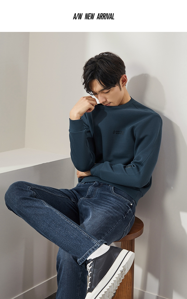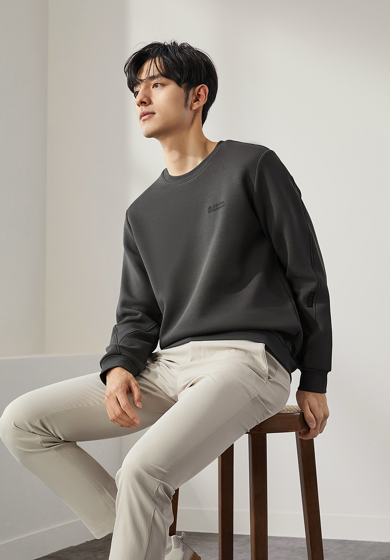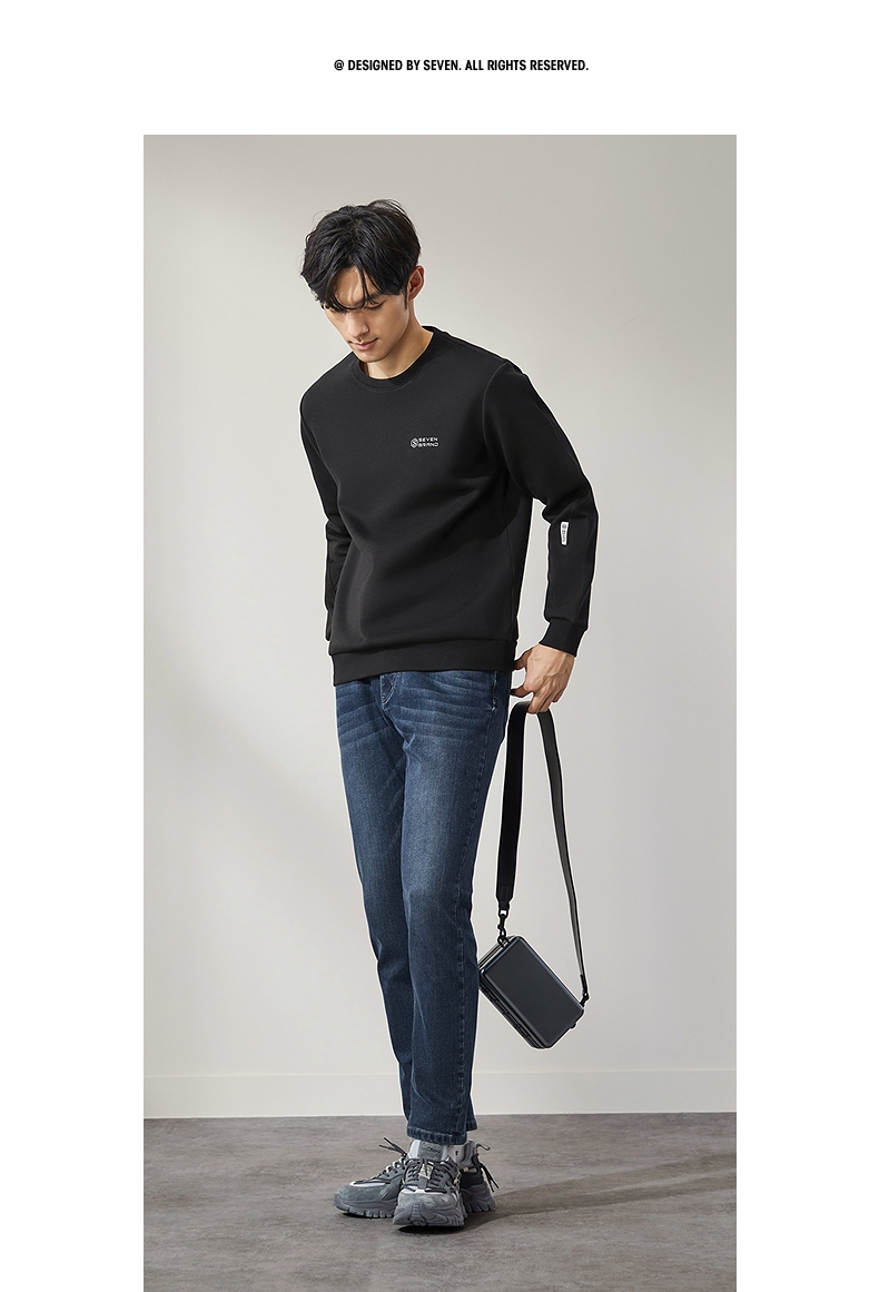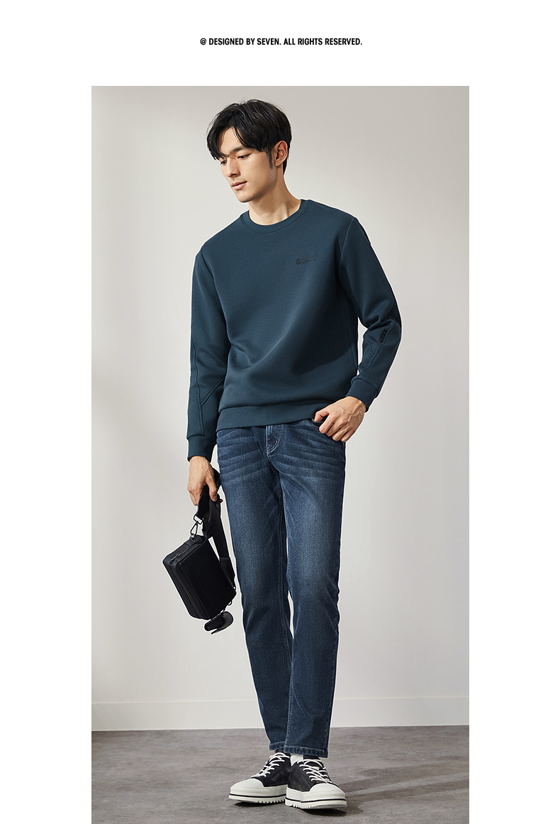 柒牌圆领卫衣男2024秋季新款时尚休闲中青年舒适百搭男士套头上衣 127W70110