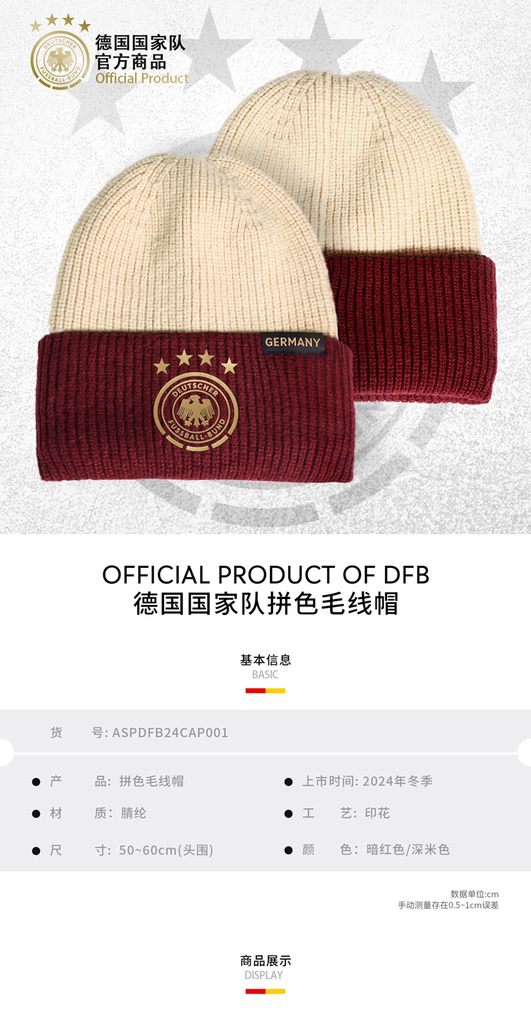 【官方正版】德国国家队 | 红金拼色毛线帽球迷冬季时尚保暖帽