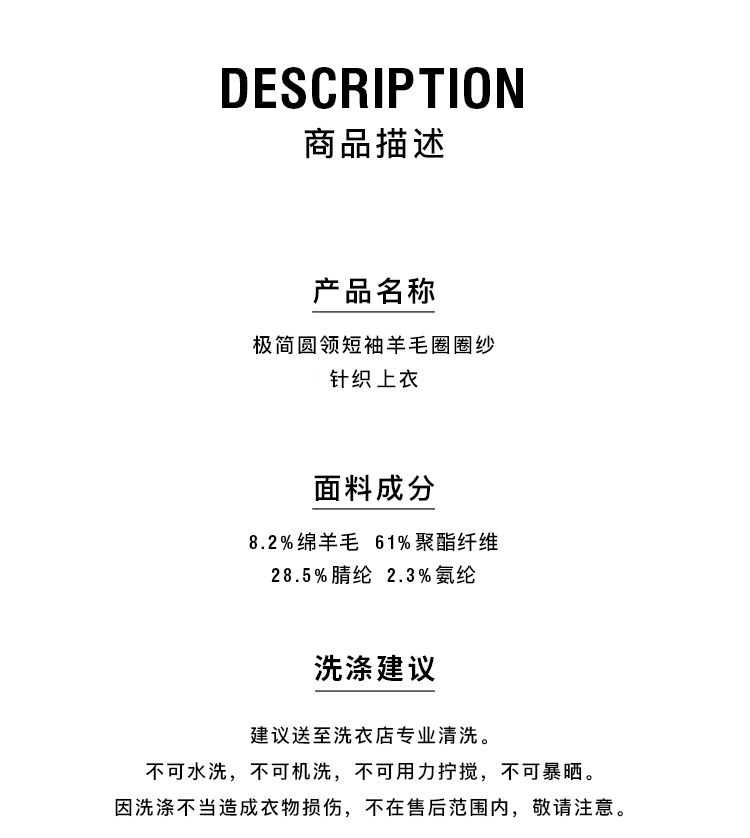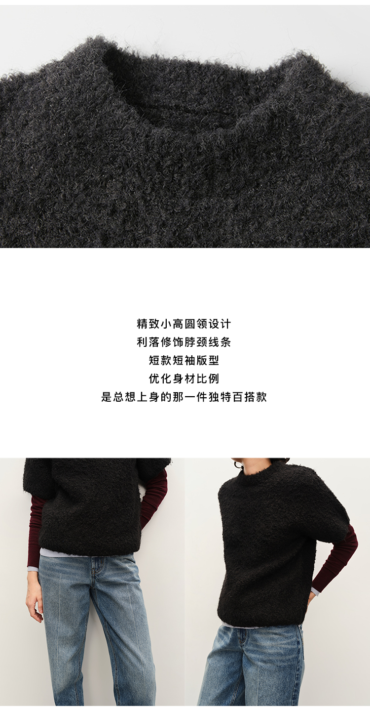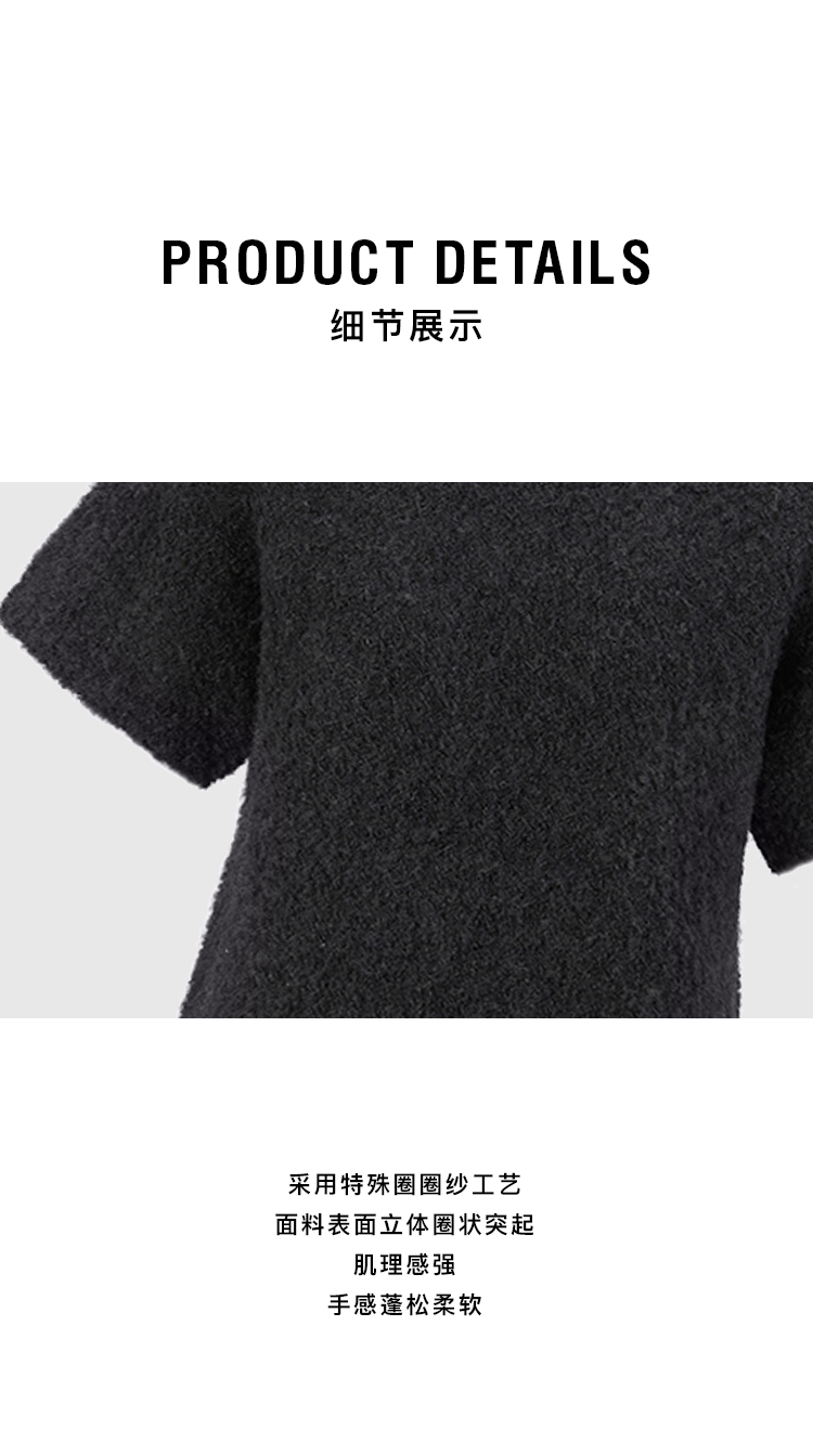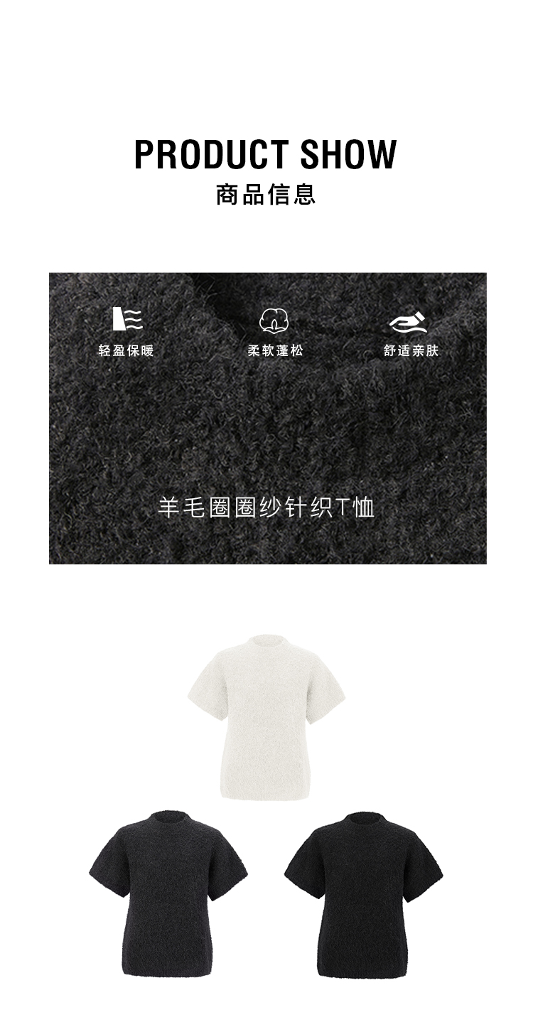 HIDEMI 极简圆领短袖羊毛圈圈纱针织上衣