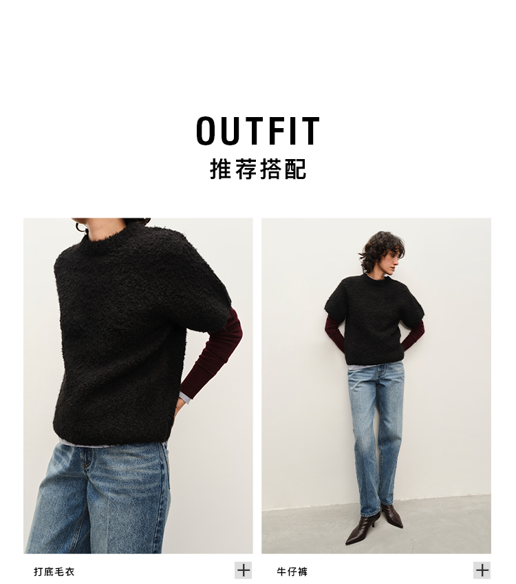 HIDEMI 亲肤柔润感涟漪堆堆领针织上衣 米色/藕粉色/灰蓝色