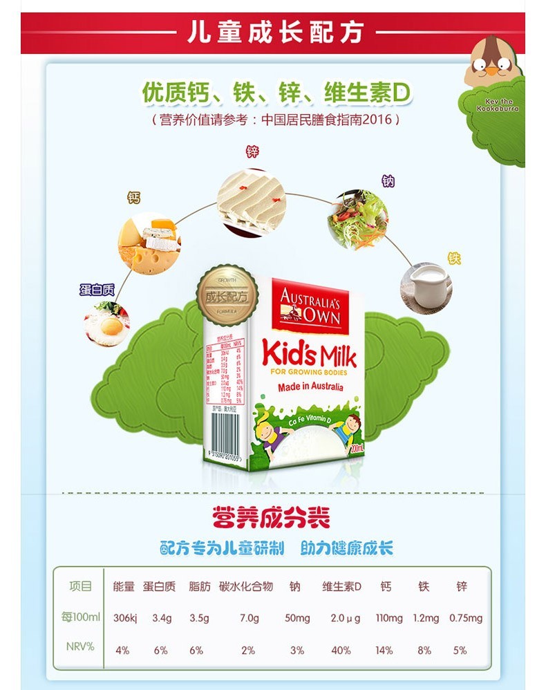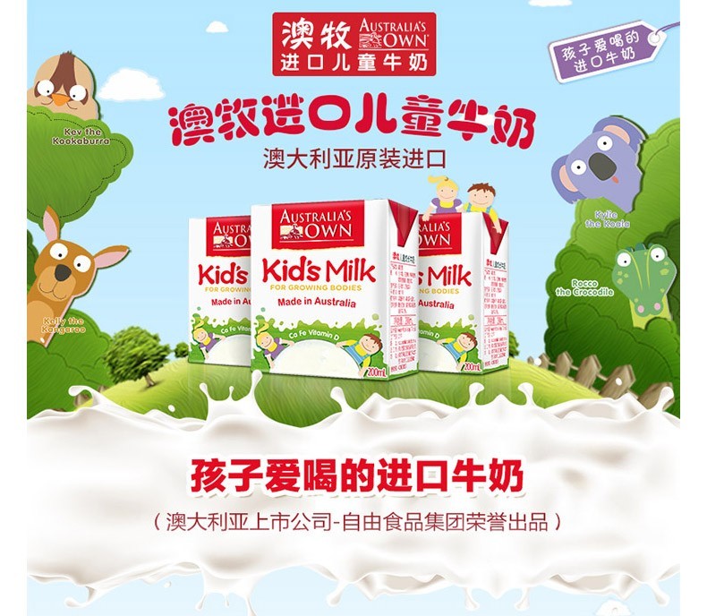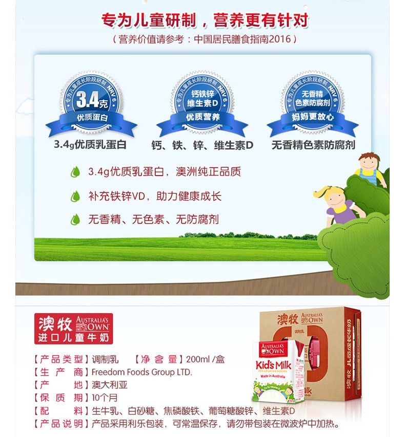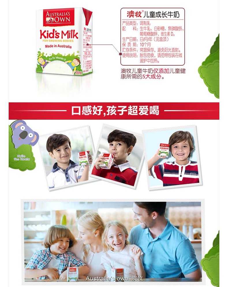 澳牧儿童成长牛奶200ml*12盒