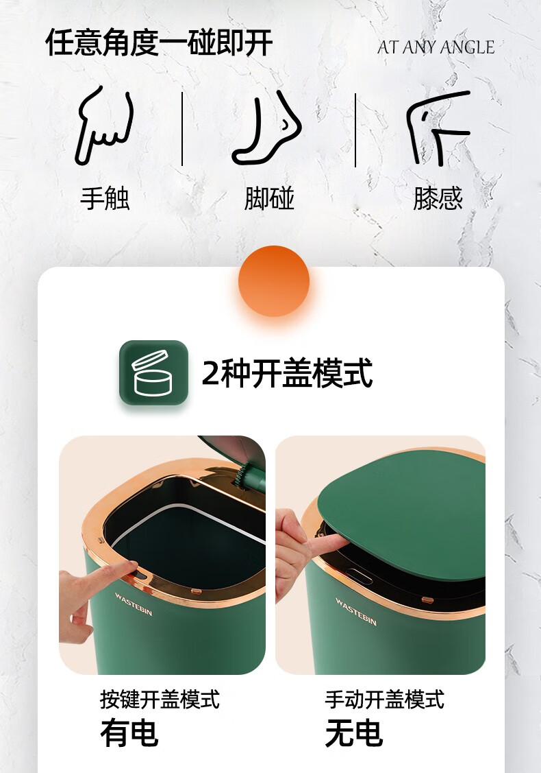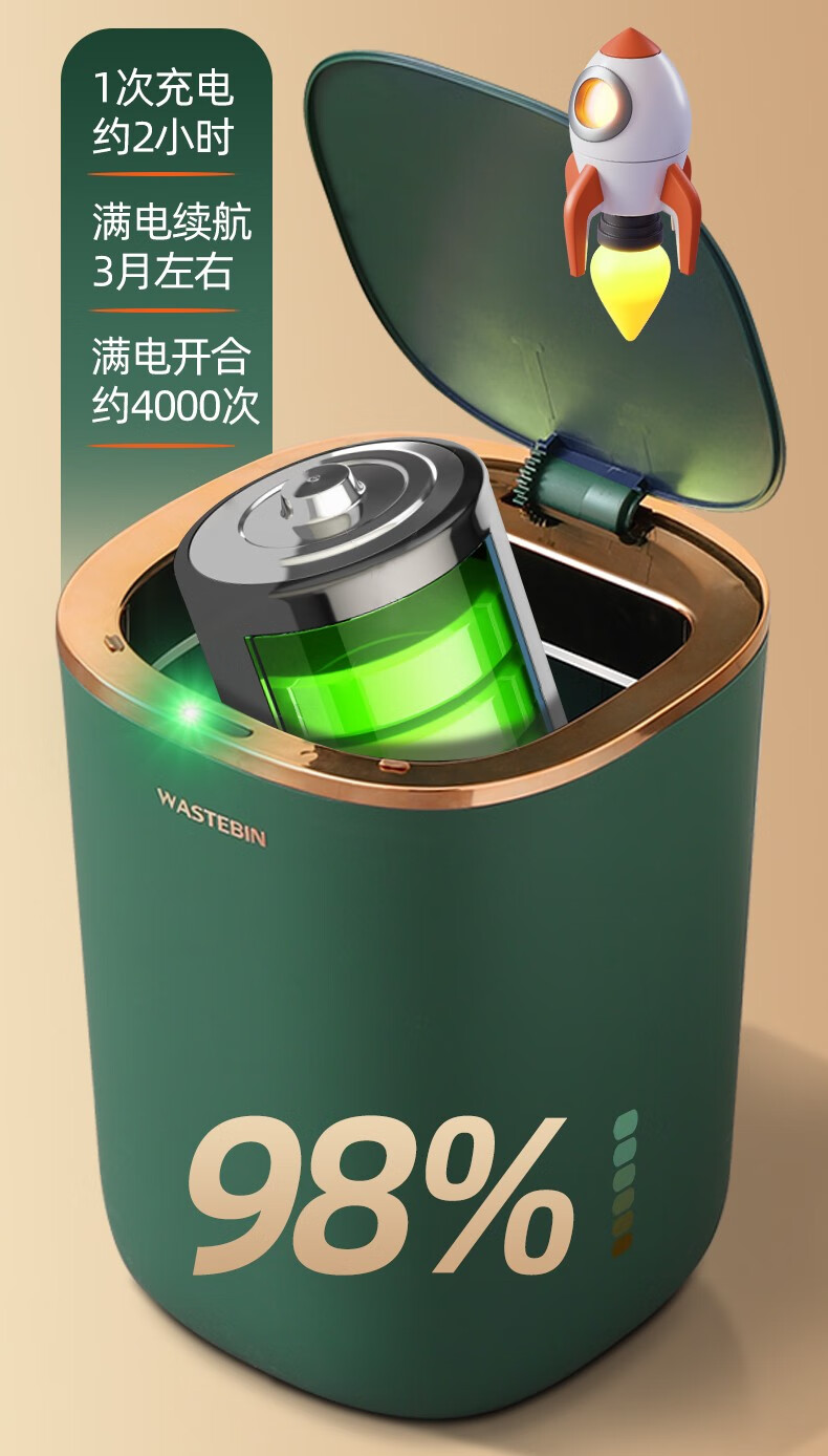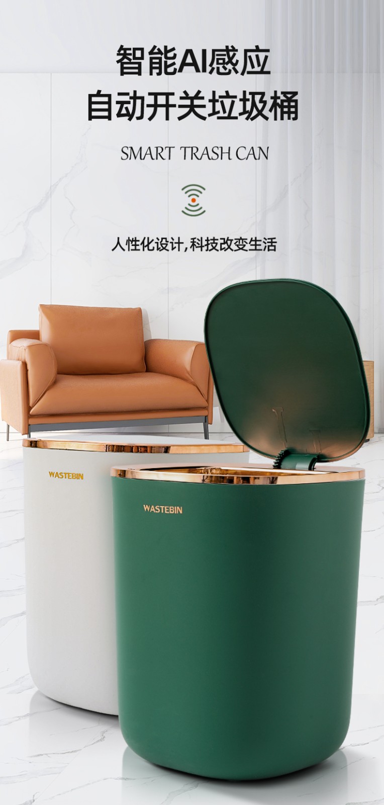 阿斯卡利12L智能垃圾桶充电款带盖全自动感应式家用厨房厕所卫生间客厅轻奢垃圾筒纸篓