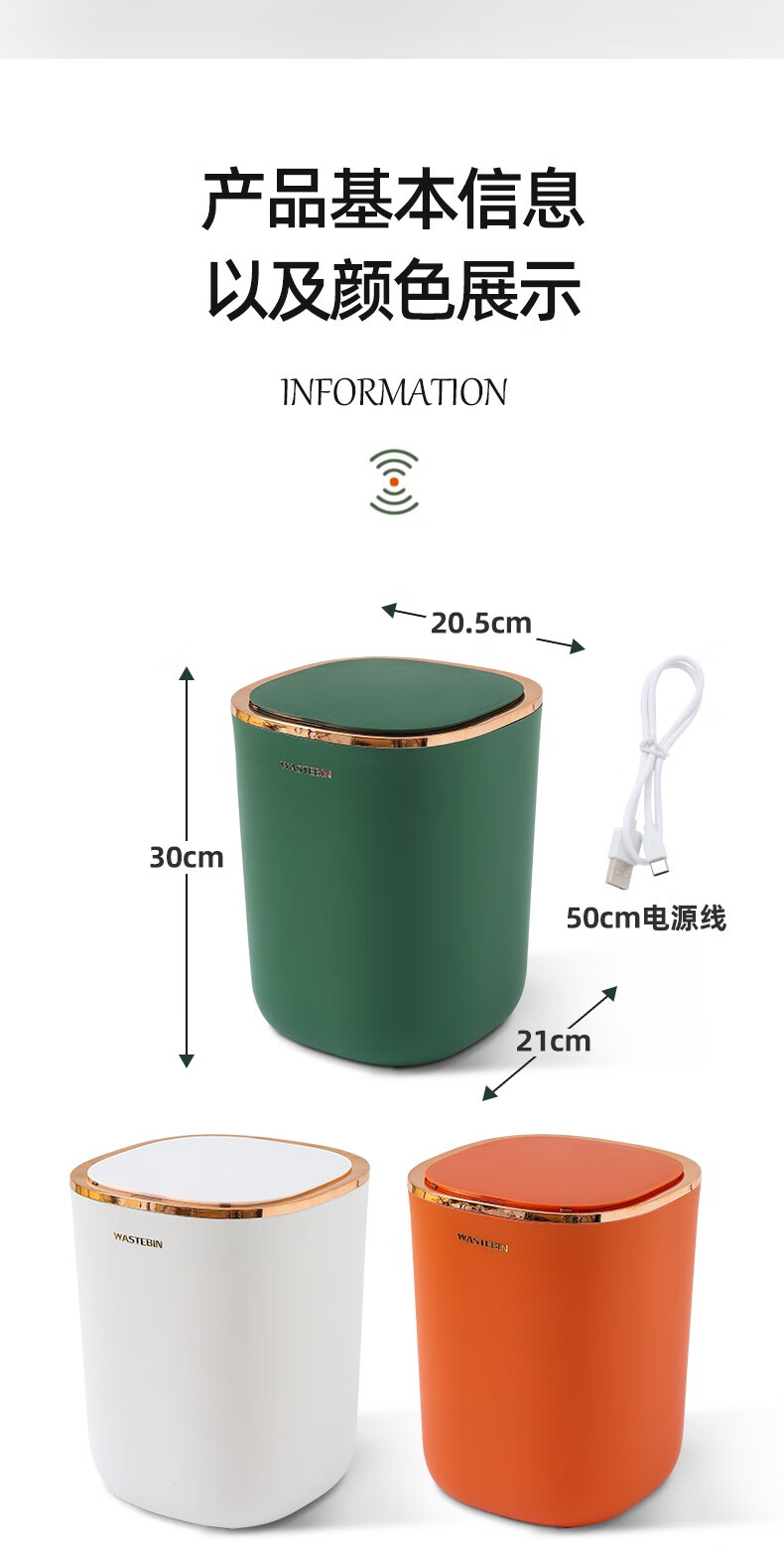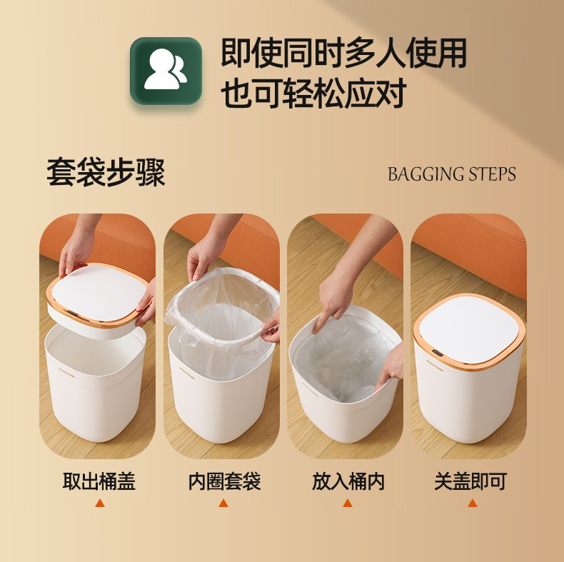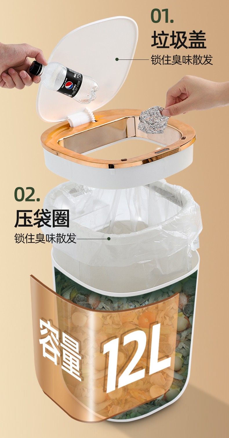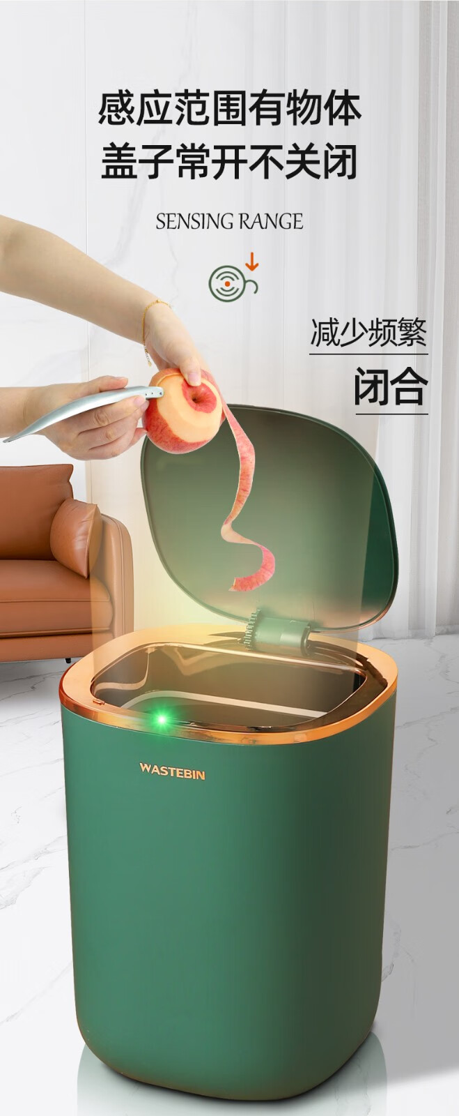 阿斯卡利12L智能垃圾桶充电款带盖全自动感应式家用厨房厕所卫生间客厅轻奢垃圾筒纸篓