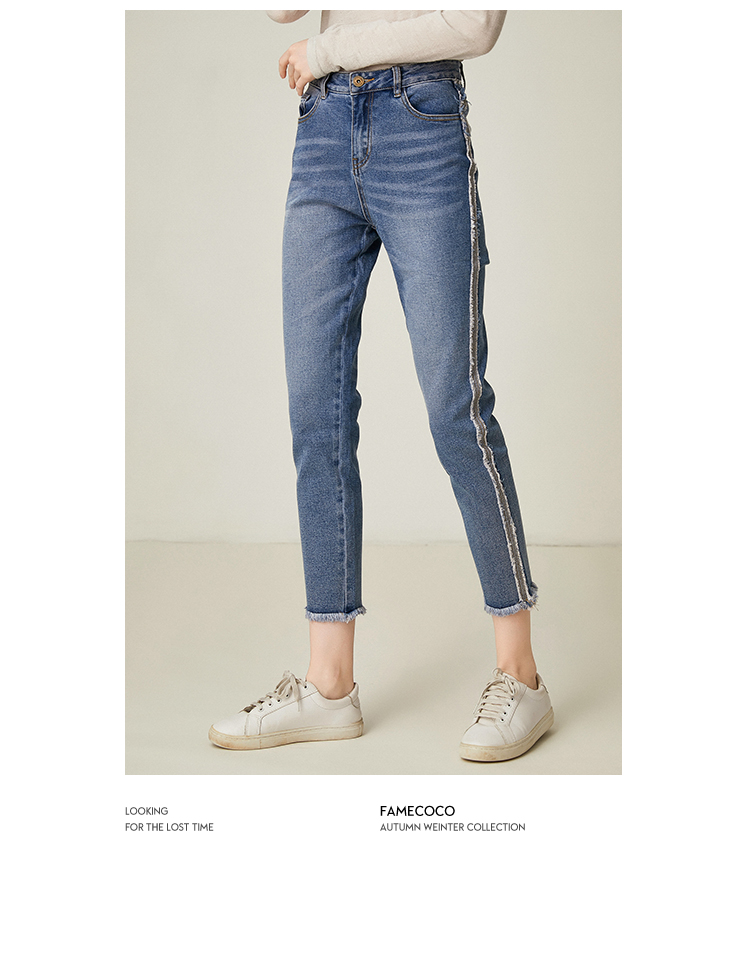 famecoco范可儿纯棉铅笔裤修身小脚裤九分裤F185GA157