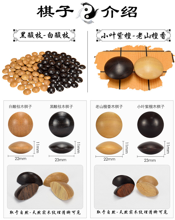 天然香气 双面凸木棋子 小叶紫檀+老山檀香棋子+香花梨木罐+红酸枝外盒