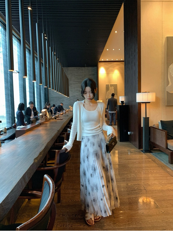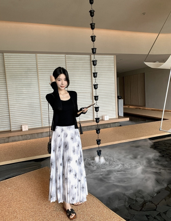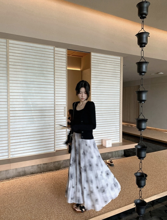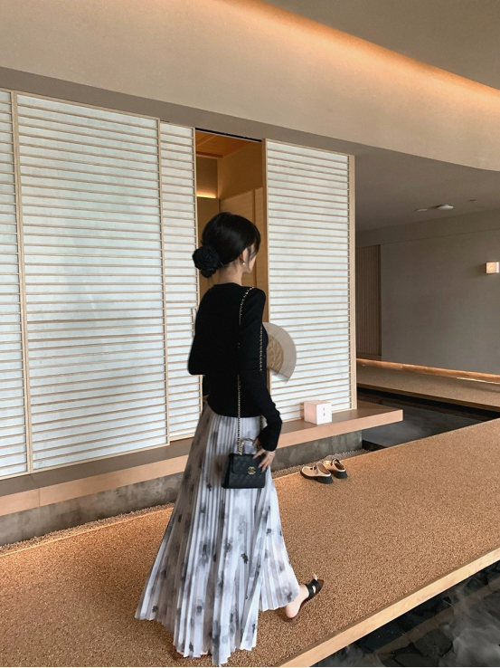 上身巨显瘦显气质❗️ 垂顺感抗皱性真的非同一般️ 颜色古典的水墨画❗️穿上瞬间女人味十足️ 用料是普通裙子的两倍❗️ 裙摆大气充满艺术美❗️走起来超级好看