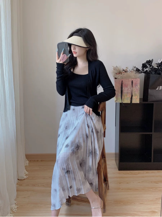 🎈【全国包邮】张贝贝同款水墨画褶皱半身裙:❗❗❗万能穿搭的A字版型,掐出细腰,盖住肉腿褶皱感绝了 😁