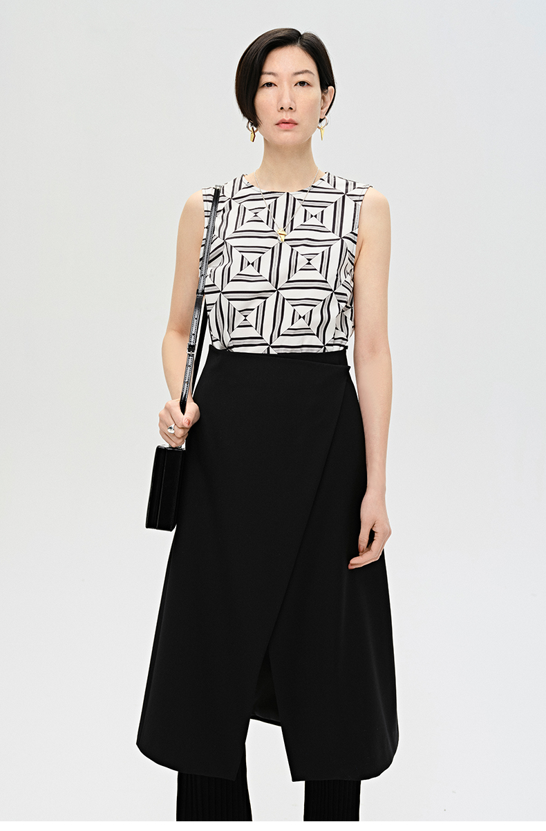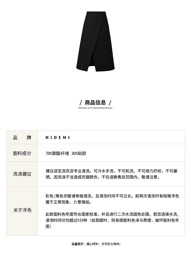 HIDEMI 显瘦不对称简约设计感开衩半身裙