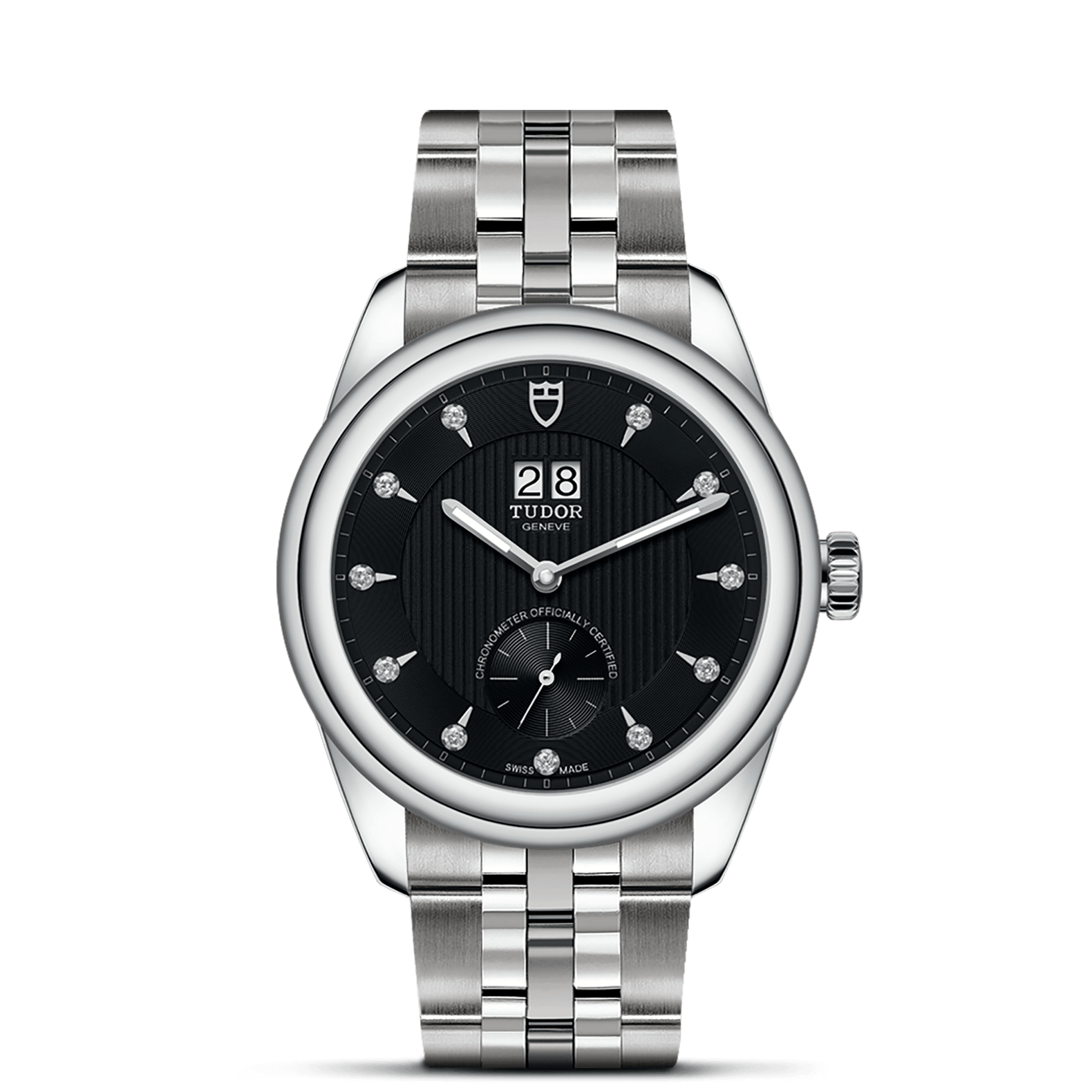 黑色配镀铑或镀金钟点标记,镶11颗钻石