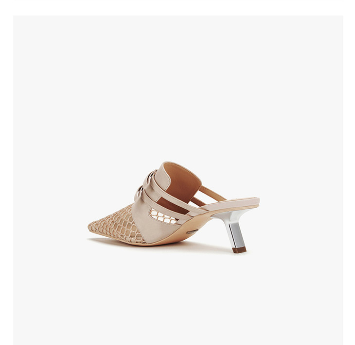 【微瑕疵不退不换】lost in echo设计师女鞋 网纱蝴蝶结猫跟穆勒鞋 裸色尖头凉鞋单鞋