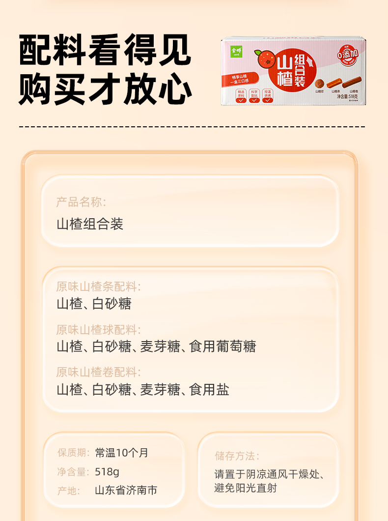 金晔山楂组合装条球卷山楂零食无添加防腐剂518g